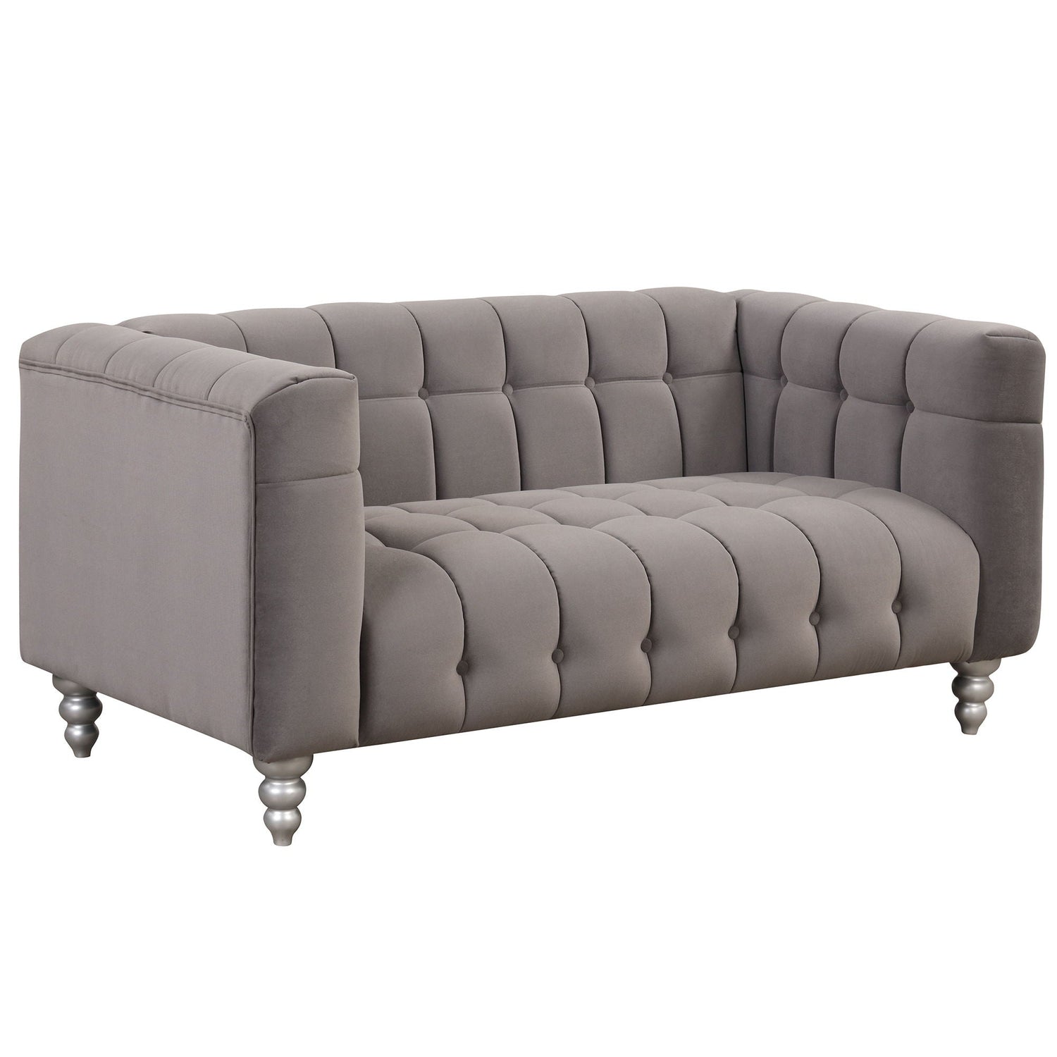 Modern Sofa Dutch Fluff Upholstered Sofa With Wood Legs, Buttoned Tufted Backrest - Gray