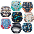 Description: Toilet training pants are ideal for toddler boys and girls who want to feel like they're wearing 'big girl' or "big boy"pants while potty training and used when accidents are less frequent. MooMoo Baby Training Pants have been extra padded in the front and back. It's water resistant and better water imbibition than normal undies, committing to give baby the most comfortable experience and achieve effectiveness, easily to use and perfect choice for moms and toddlers!Product Feature: --100% cotton with absorbent polyester lining --6 layers, more absorbent and water resistant than regular underwear --easy to pull up and down --durable, washable and reusable --cute patternMaterial: 100% cotton + 100% polyester lining Size:2T (waist 13.4in, height 33.5in, weight 24.3-26.5lbs) 3T (waist 14.2in, height 37.4 in, weight 26.5-30.9lbs) 4T (waist 15in, height 41.3in, weight 30.9-34.5lbs) 5T (waist 15.8inches,height 45.2in, weight 34.5-38.6lbs) 6T (waist 16.6inches,height 49.2in, weight38.6-43.5bs) 7T (waist 17.4inches,height 53.2in, weight43.5-47.5bs) Please allow 1-2cm differs because of manual measurement, thanks (1cm=0.394inch) Package included:8packs potty training underwear