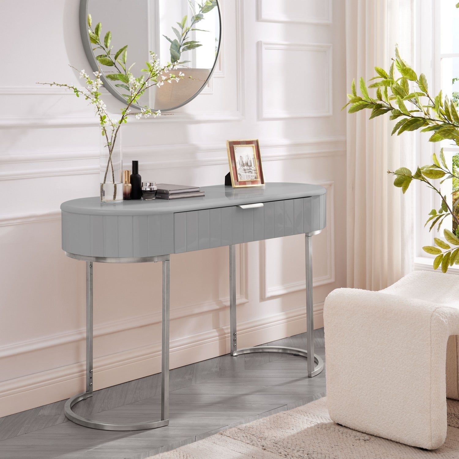 - ELEGANT STATEMENT PIECE - Elevate your space with our vanity table in a sleek, curved silhouette and ridged design. Perfect for bedrooms, entryways, and living rooms. Contemporary design accentuates a modern glam look to your home.