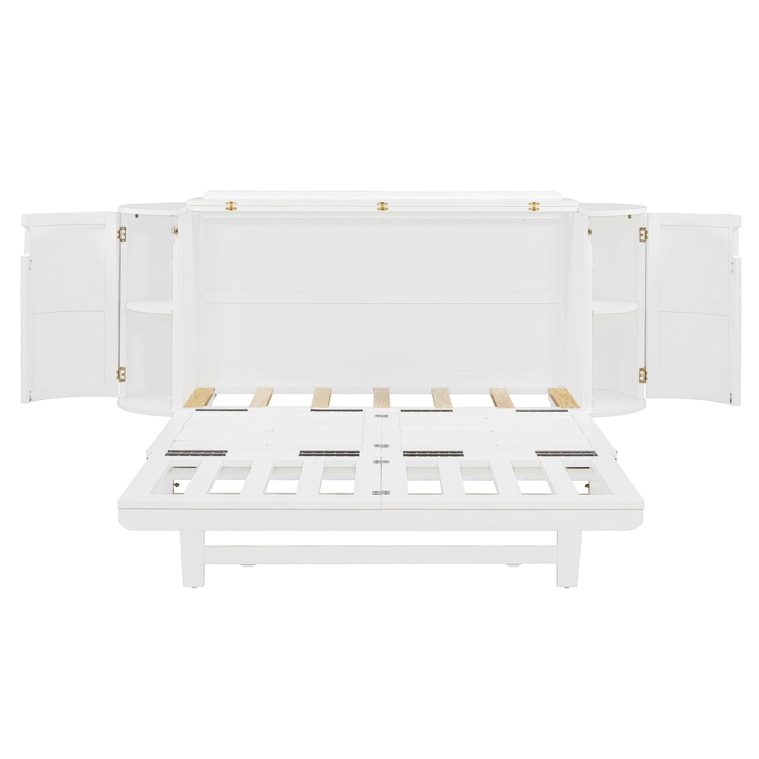 Queen Murphy Bed With Hidden Storage & Modern Woven Design - White