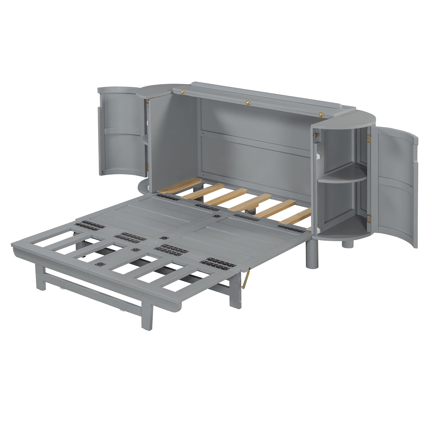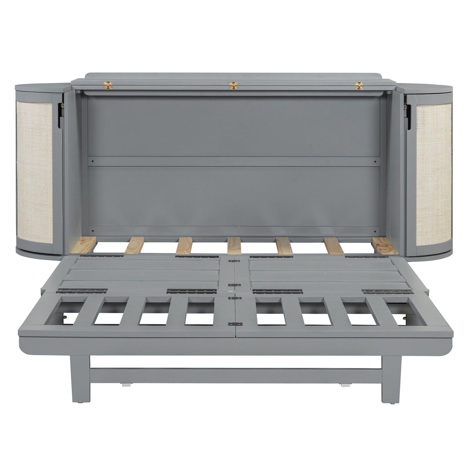 Queen Murphy Bed With Hidden Storage & Modern Woven Design - Gray