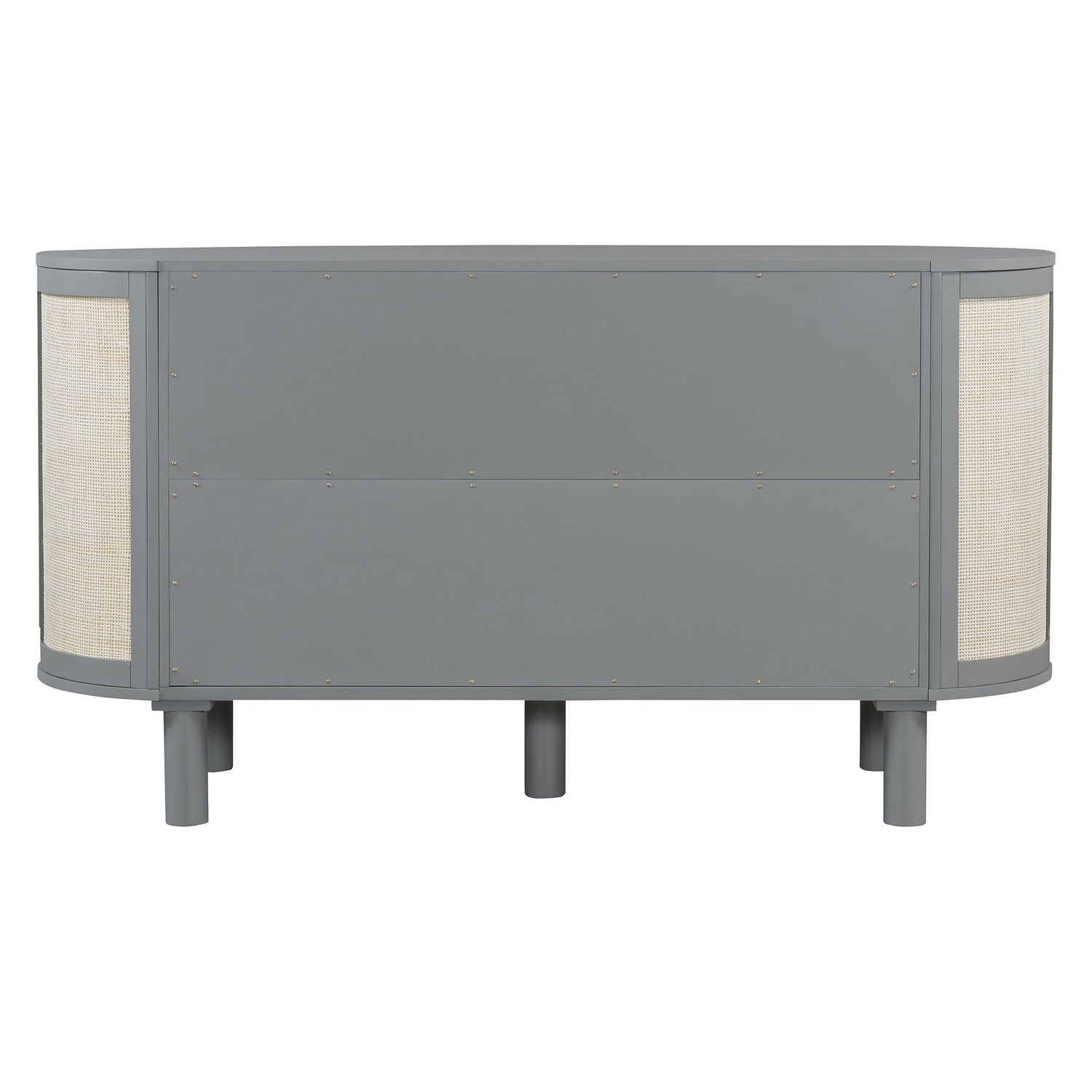Sleek Drawer-Front Design: Camouflaged drawers with handwoven rattan accents blend rustic-modern charm into any décor. The minimalist yet functional front panels enhance aesthetics while discreetly concealing storage.