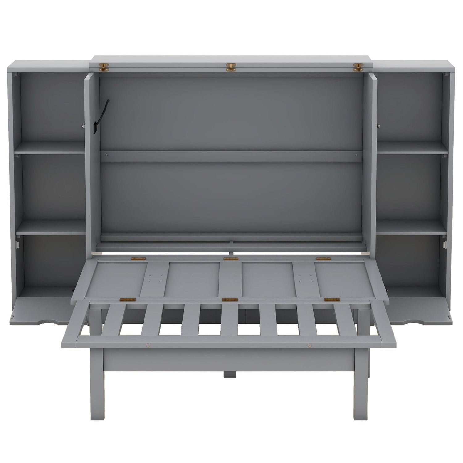 Queen Size Murphy Bed With Shelves, Drawers And USB Ports - Gray