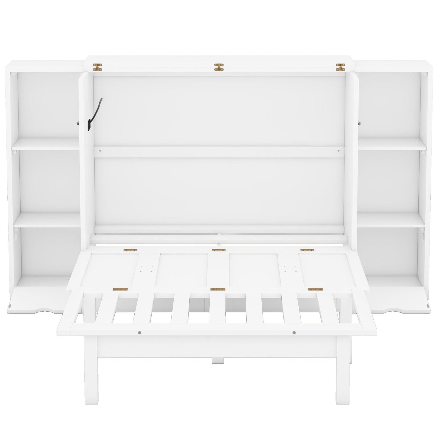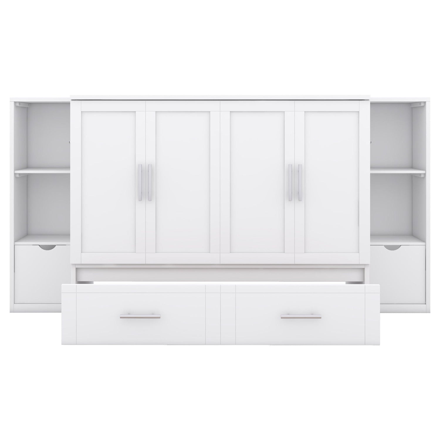 Queen Size Murphy Bed With Shelves, Drawers And USB Ports - White