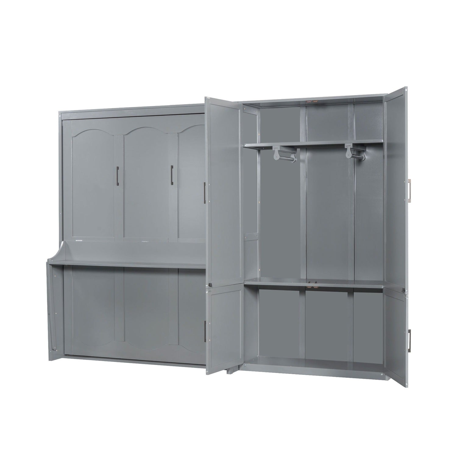 Queen Size Murphy Elegant Wall Bed With Closet - Gray