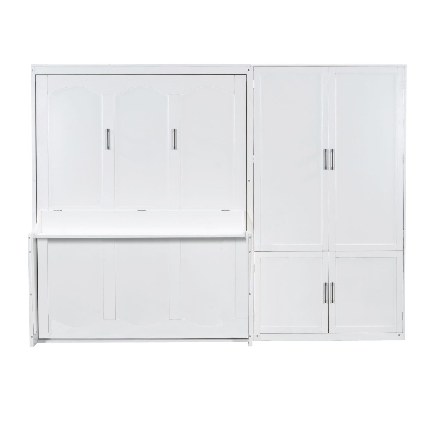 Queen Size Murphy Wall Bed With Closet, Space Saving Design - White