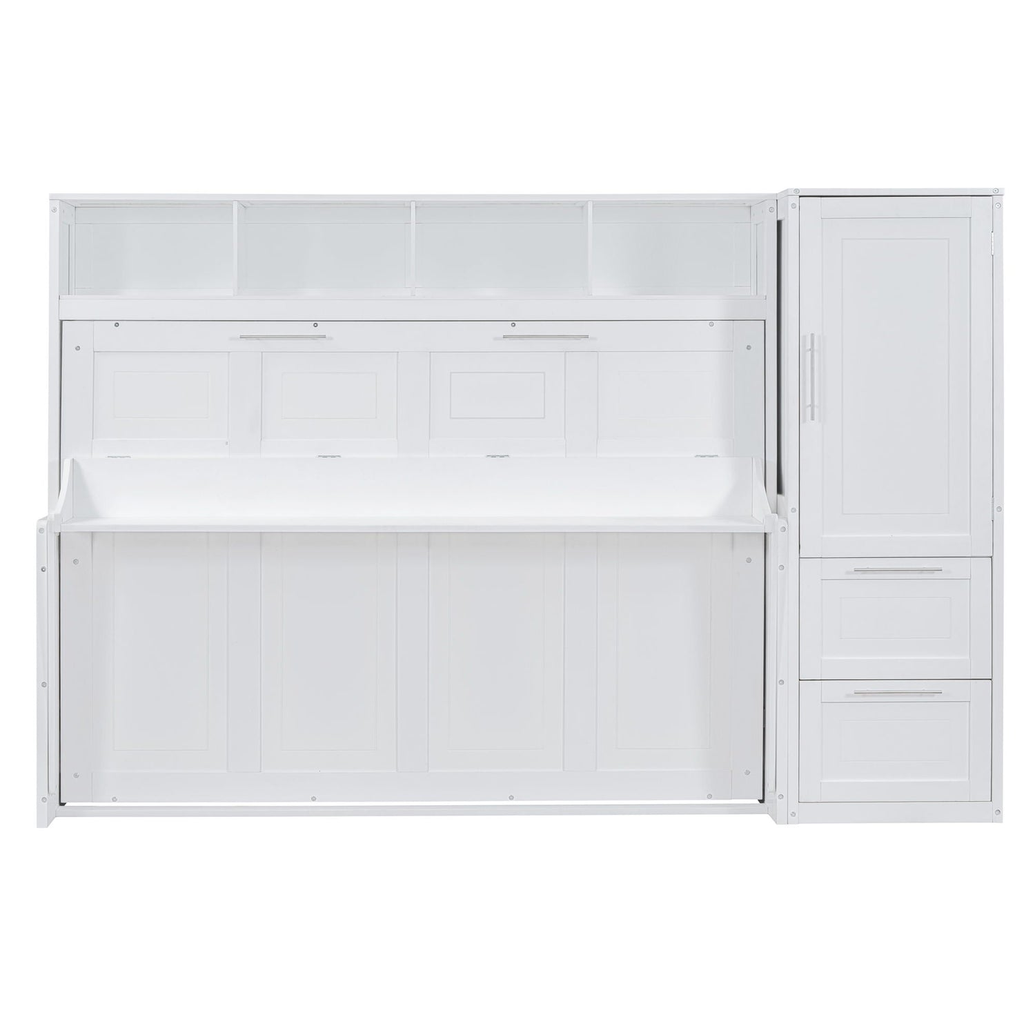 Queen Size Murphy Wall Bed With Closet And Drawers - White