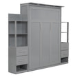 Full Size Murphy Wall Bed & Shelves, Drawers And LED Lights - Gray