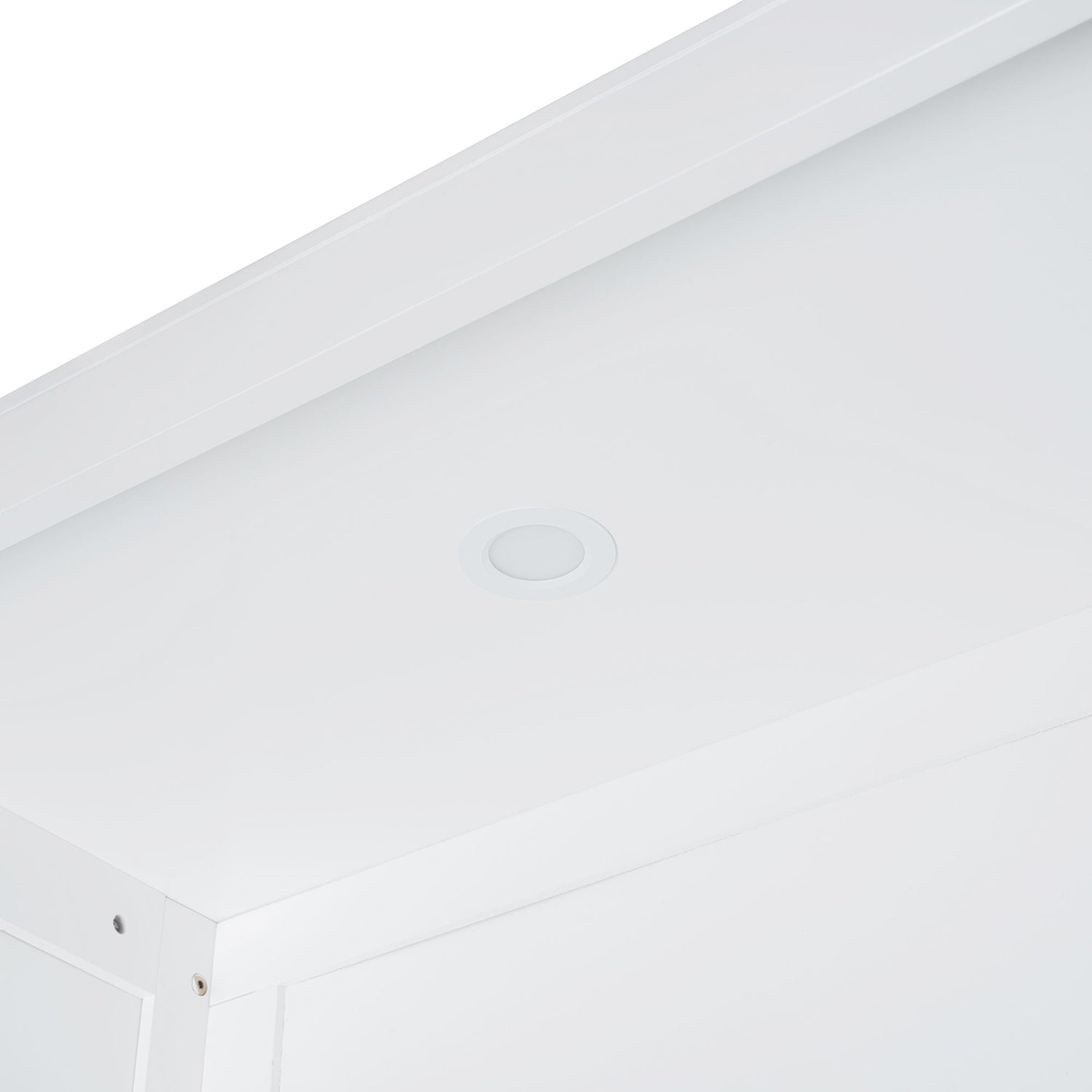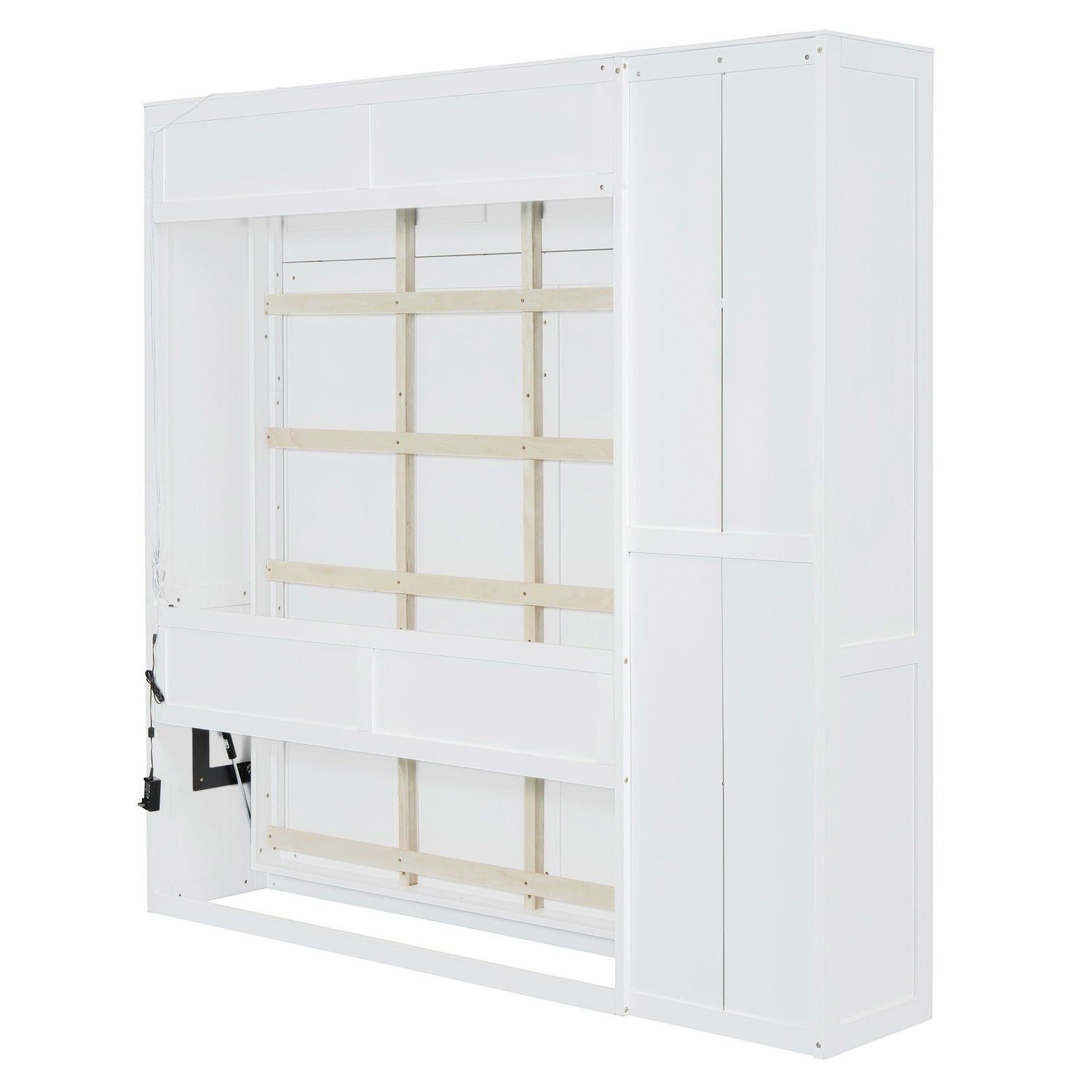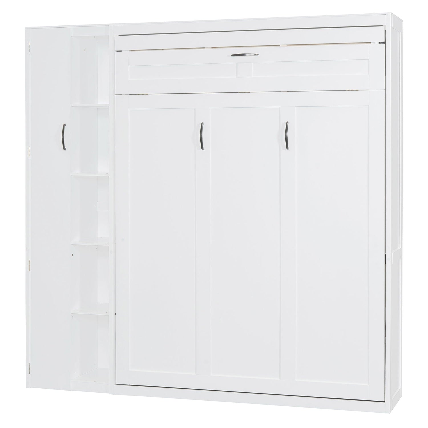 Full Size Murphy Wall Bed With Shelves, Wardrobe And LED Lights - White