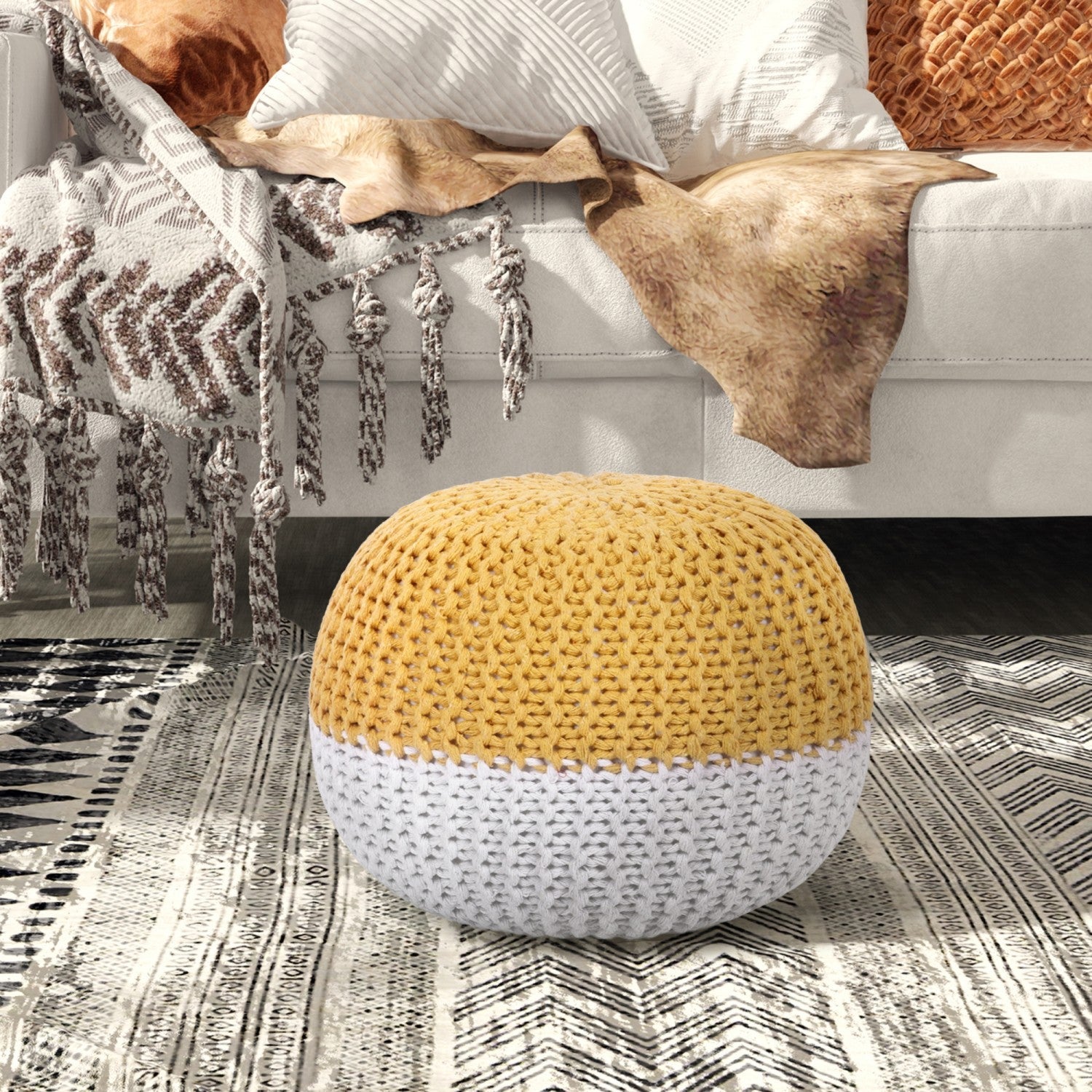 - MODERN - Our pouf ottoman is ideal for those who enjoy simple spaces but still want to receive the full experience of the product's functions. With its various colors and handmade textured knit design, it is a perfect accessory for any home.