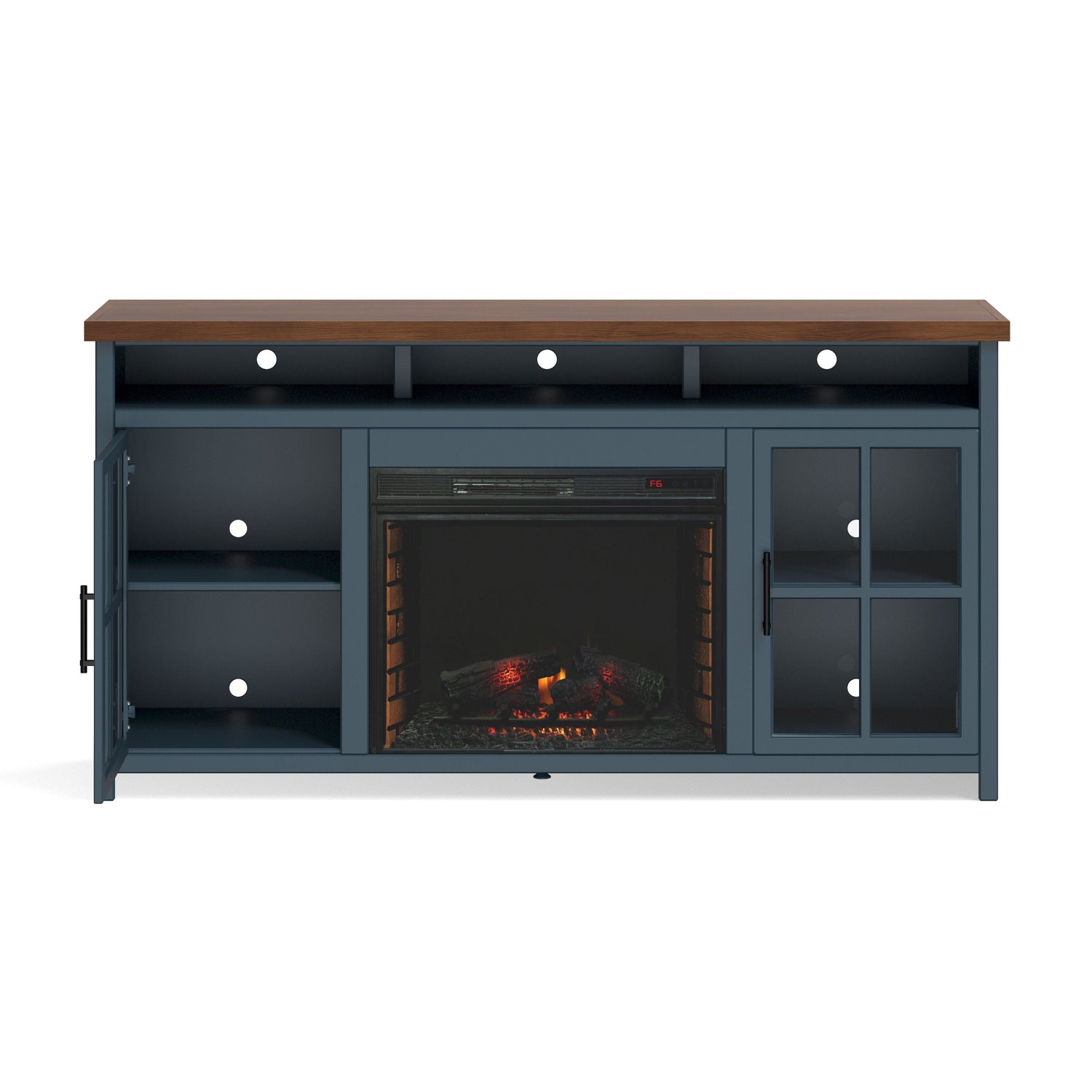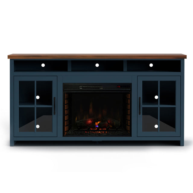 Nantucket - Fireplace TV Stand Console For TVs Up To 85" - Blue Denim / Whiskey