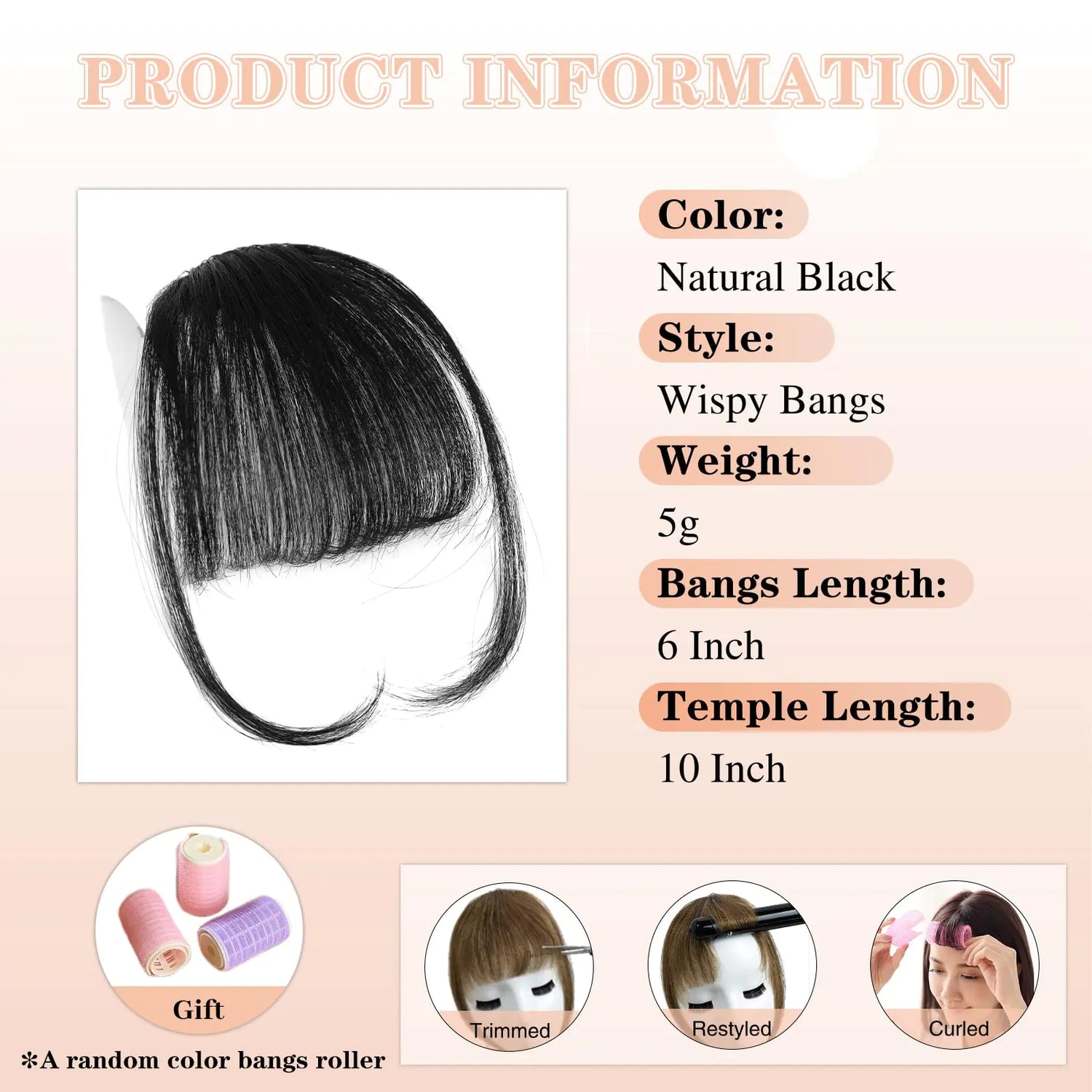 NAYOO Bangs Hair Clip in Bangs 100% Real Human Hair Extensions Natural Black Wispy Bangs Clip on Air Bangs for Women Fringe with Temples Hairpieces Curved Bangs for Daily Wear