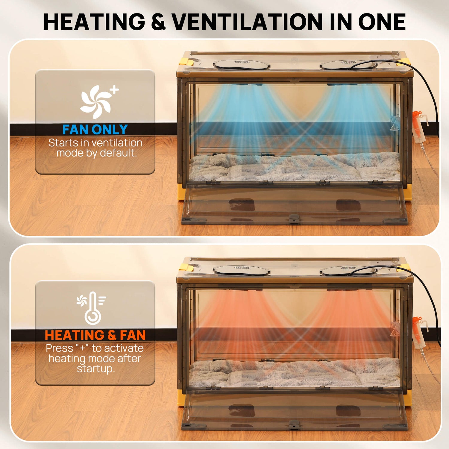 - Upgraded Dual Fan System: Equipped with two adjustable fans, each with three speeds; provides quick and even heat distribution; excellent ventilation in warmer weather to keep your pets comfortable