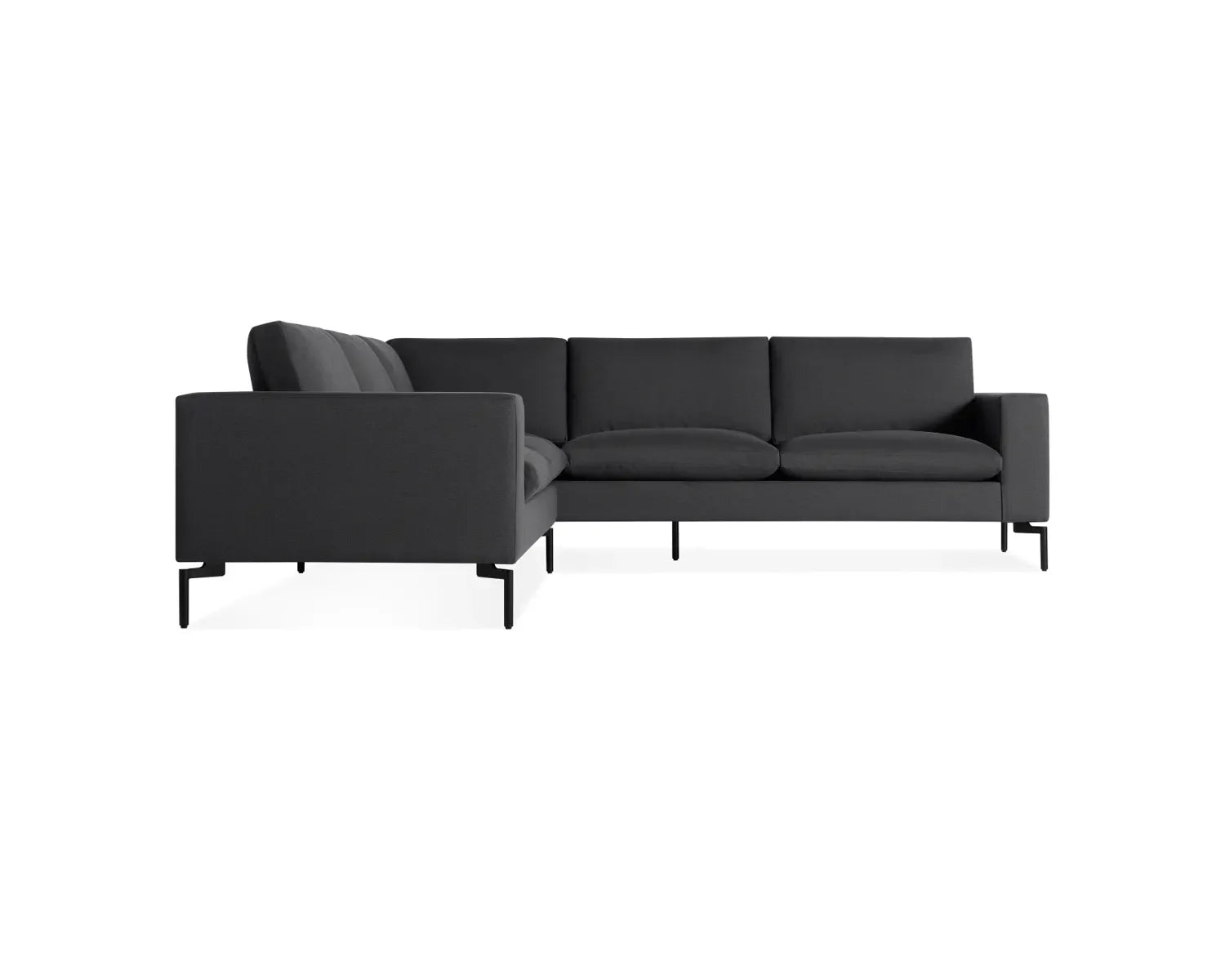 Elevate your living space with the New Standard Sectional Sofa. Designed for ultimate comfort and modern aesthetics, this sofa features wide arms, loose cushions, and show-stopping powder-coated steel legs. The high-resiliency foam cushions with a feather down wrap offer firm support that becomes more relaxed over time, enhancing the casual, inviting look of any room. Available in a variety of luxurious fabrics including Spitzer Grey, Maharam upholstery, and premium leathers, this sectional sofa is customizable to suit your style. Crafted with a kiln-dried wood frame and sinuous steel springs for durability, the New Standard Sectional is the perfect balance of style, comfort, and function. Ideal for large living rooms or entertaining spaces, it’s ready to ship and will quickly become your go-to piece for relaxing.