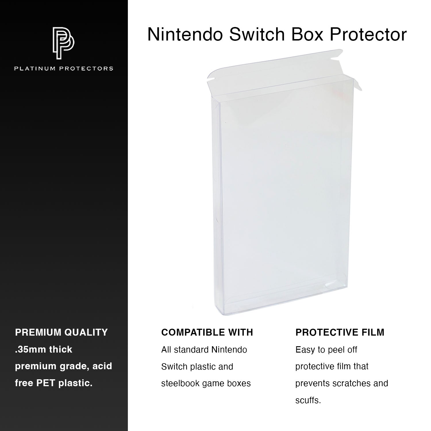 - THICK, STURDY MATERIAL: We use only premium materials to ensure that your protectors are built to last for years to come. Our protectors are made from high-grade .35mm thick, acid-free PET plastic to withstand dents and scratches, and keep your game boxes in mint condition.