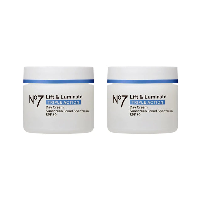 No7 Lift & Luminate Triple Action Day Cream - Anti-Aging Face Moisturizer SPF 30, Hyaluronic Acid & Vitamin C - Firms Skin for Radiant Glow - Suitable for Sensitive Skin (2 pack, 1.69 Fl Oz each) Regular, Pack of 2