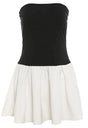 Off-neck Color Contrast Patchwork Pleated Slim Fit Dress - Black / S is backordered and will ship as soon as it is back in stock.