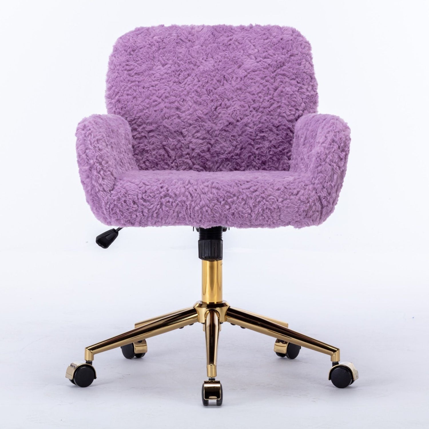 Office Chair, Artificial Rabbit Hair Home Office Chair With Golden Metal Base, Adjustable Desk Chair Swivel Office Chair, Vanity Chair - Violet