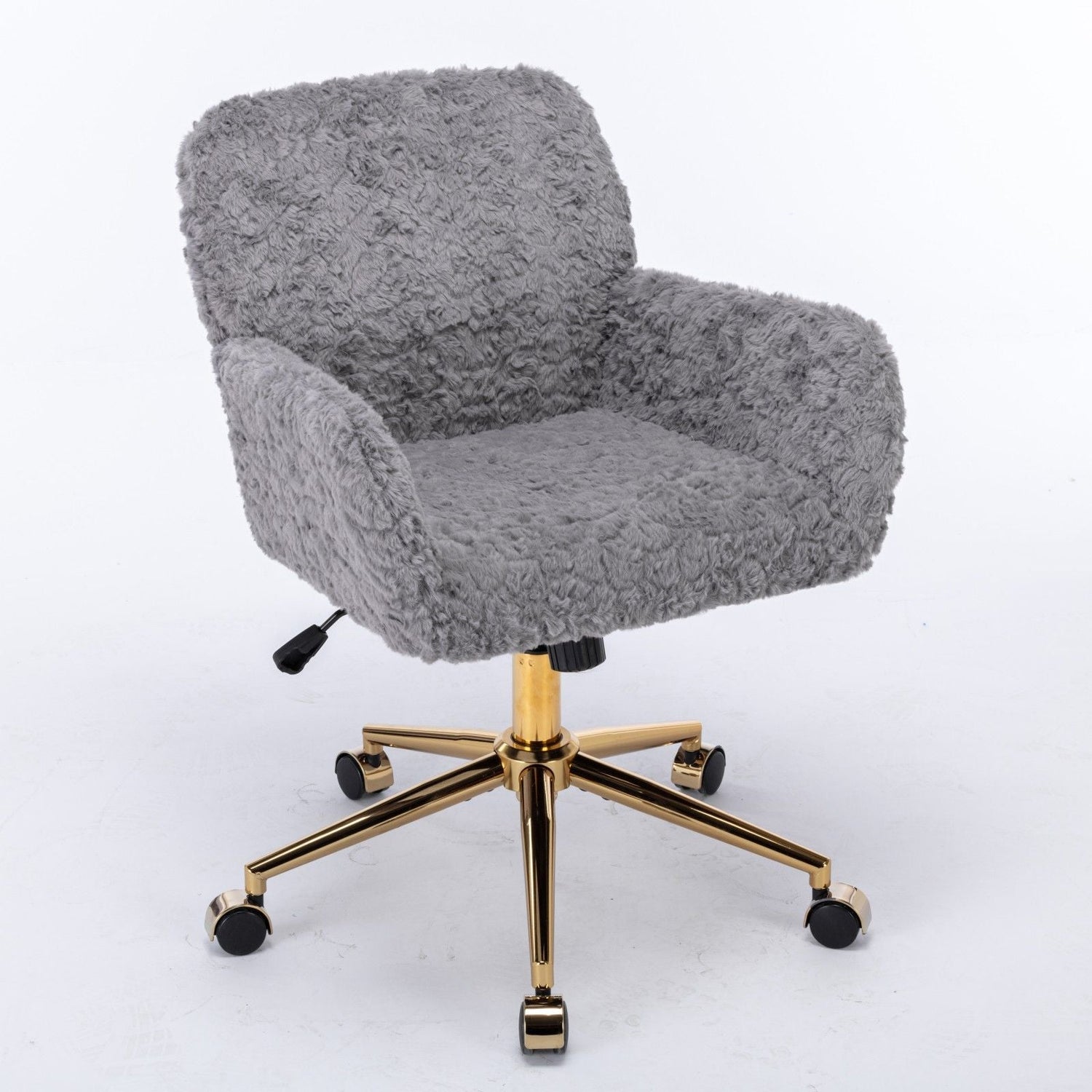 Office Chair, Artificial Rabbit Hair Home Office Chair With Golden Metal Base, Adjustable Desk Chair Swivel Office Chair, Vanity Chair - Gray