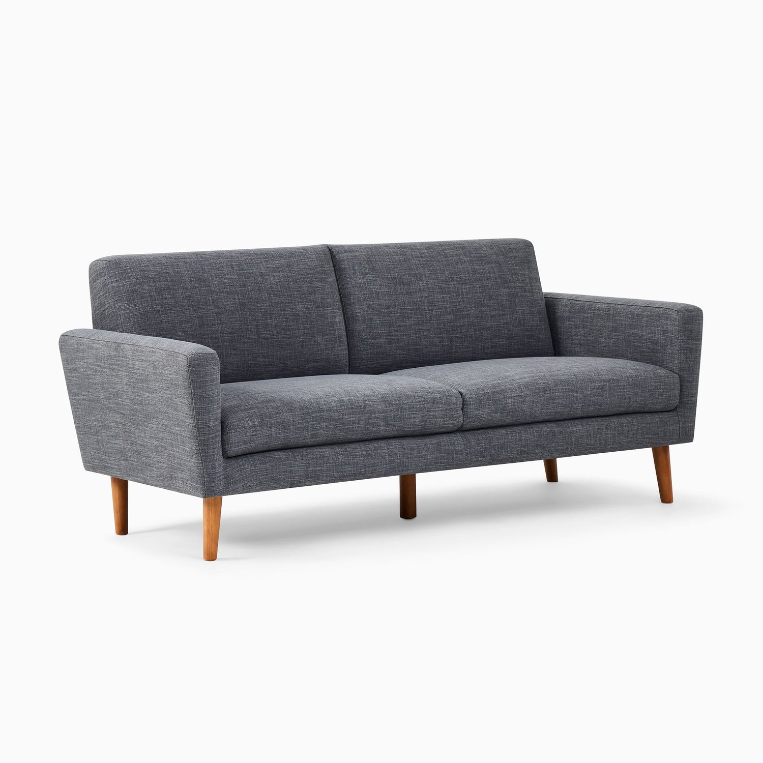 The Oliver Sofa brings a polished, modern style to your home with a cozy yet refined profile perfect for small spaces. Available in sizes 72" and 82" and upholstery options including Twill in Dove, Yarn Dyed Linen in Pewter, and Modern Chenille in Dark Olive, this sofa offers a versatile fit for various décor styles. Built with a solid pine and engineered wood frame, it provides firm support with high-resiliency foam cushions rated at 5 on a firmness scale. The sofa’s solid rubber wood legs with a light walnut finish are removable, making it convenient for setup and rearranging. Ideal for compact living spaces, Oliver seats two comfortably on the 72" model and three on the 82". Designed with durability in mind, the sofa is crafted for lasting comfort and support.