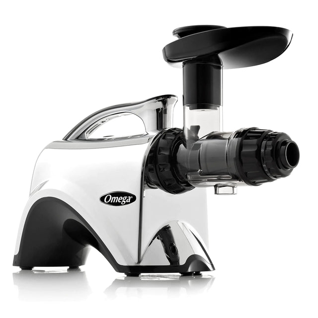 The Omega NC900HD Nutrition System is a masticating juicer machine. Sometimes referred to as a low-speed juicer the Nutrition Center processes at 80 RPM whereas most other juice extractor machines process at a speed of 1650 to 15000 RPM. The low speed protects and maintains healthy enzymes prevents oxidation and allows juice to be stored for longer periods without degradation. One of the most effective ways to easily access nutritious enzymes that help to improve immunity and overall health Omega Juicer Machines are designed to deliver a potent dose of antioxidants to boost and support overall health and immunity. Dont eat your fruits and veggies—juice them and enjoy a day’s worth of vitamins in 1 delicious drink! The dual-stage juice processing system extracts the maximum amount of juice from fruits vegetables leafy greens and even wheatgrass! You can also use your Omega low-speed juicer to turn nuts into nut butters make baby food from natural fresh ingredients whip up soy milk extrude pasta grind coffee and spices and mince herbs and garlic. Make delicious and nutritious drinks and snacks that everyone will love with the help of this slow juicer cold press machine. Note: some noise is to be expected. Please set this compact juicer machine juicer on top of a thin towel to help stabilize and mitigate noise.
