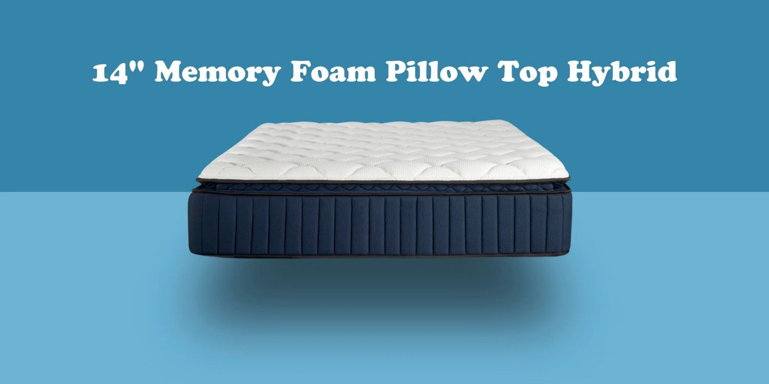 Opulence - 14" Full Size Plush Pillow-Top Memory Foam Edge Support Pocket Spring Premium Hybrid Mattress - White / Black Blue