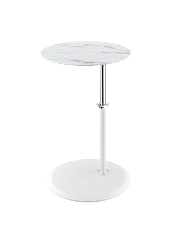 Orbit - End Table With Height Adjustable Marble Textured Top - White