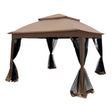 Outdoor 11X 11Ft Pop Up Gazebo Canopy With Removable Zipper Netting, 2 Tier Soft Top Event Tent, Suitable For Patio Backyard Garden Camping Area With 4 Sandbags - Brown