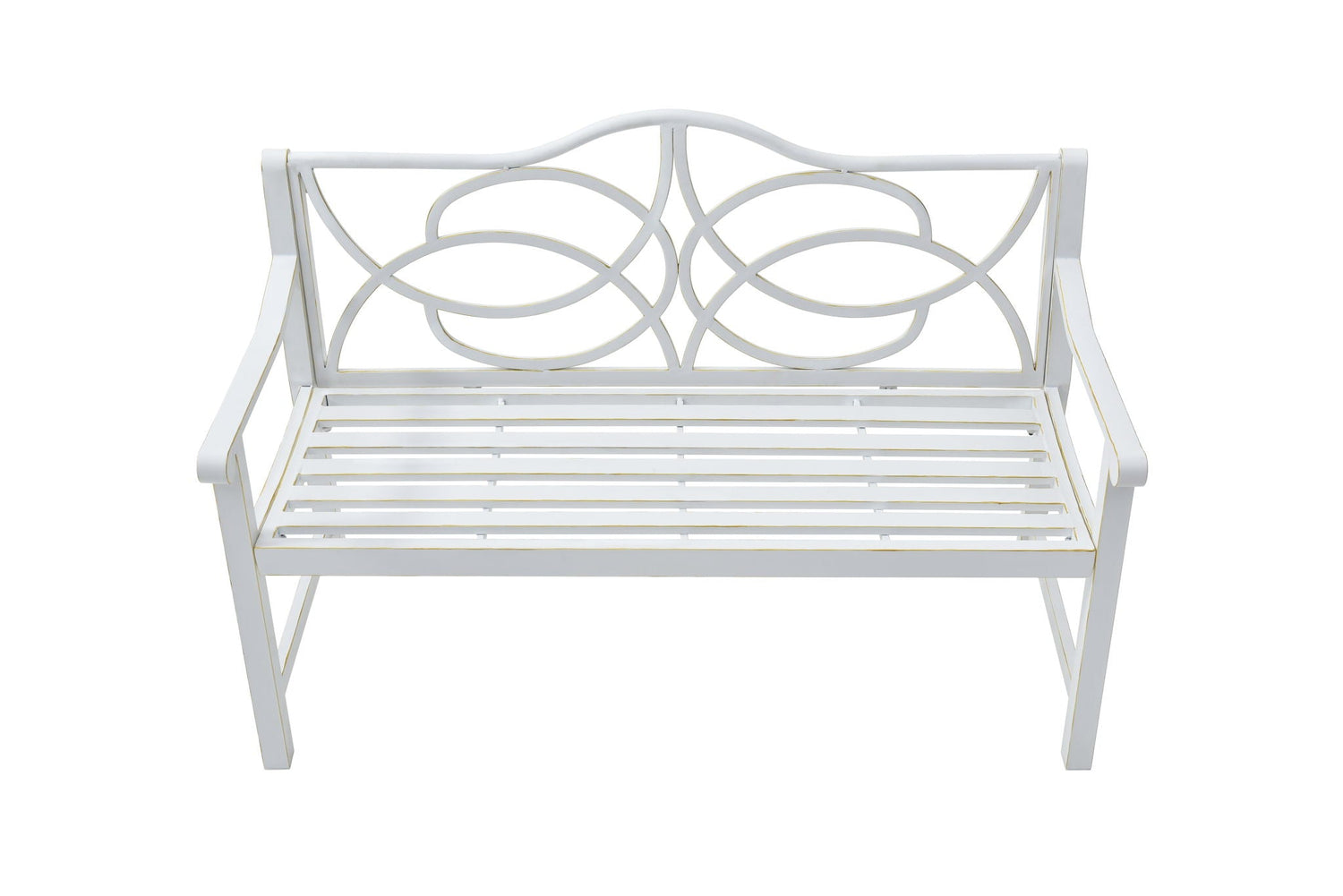 Outdoor Garden Patio Bench With Backrest And Armrest, Slatted Seat For Park, Yard & Porch, Balcony, Accommodates 2 - 3 People - White by Couch.com