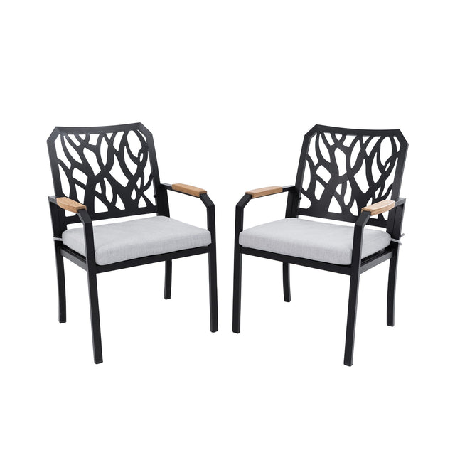 Outdoor Patio Stationary Dining Chairs With Outdoor Grade Sunbrella Cushions, Branch Like Backrest (Set of 2) - Bourbon Brown
