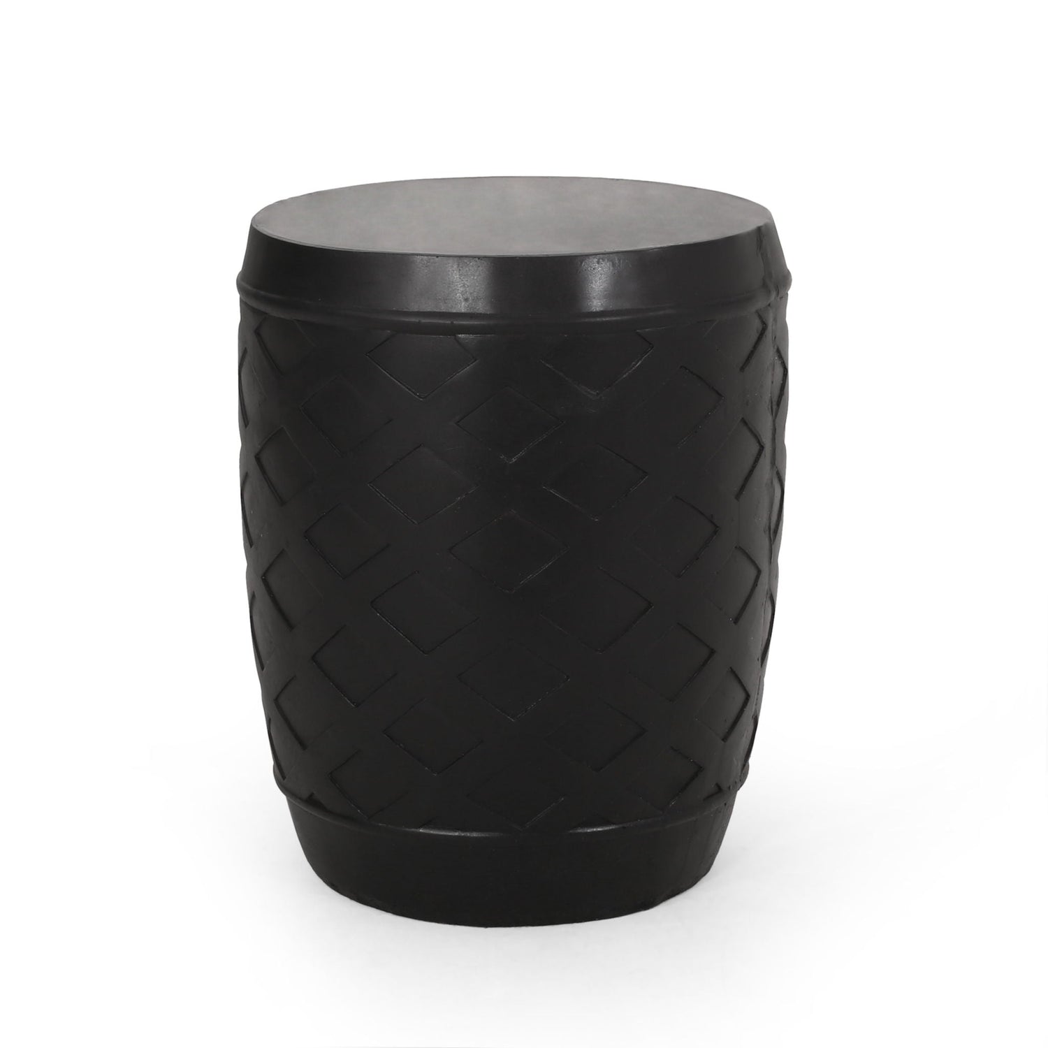 Outdoor Side Table With Lattice Design And Round Top - Black by Couch.com