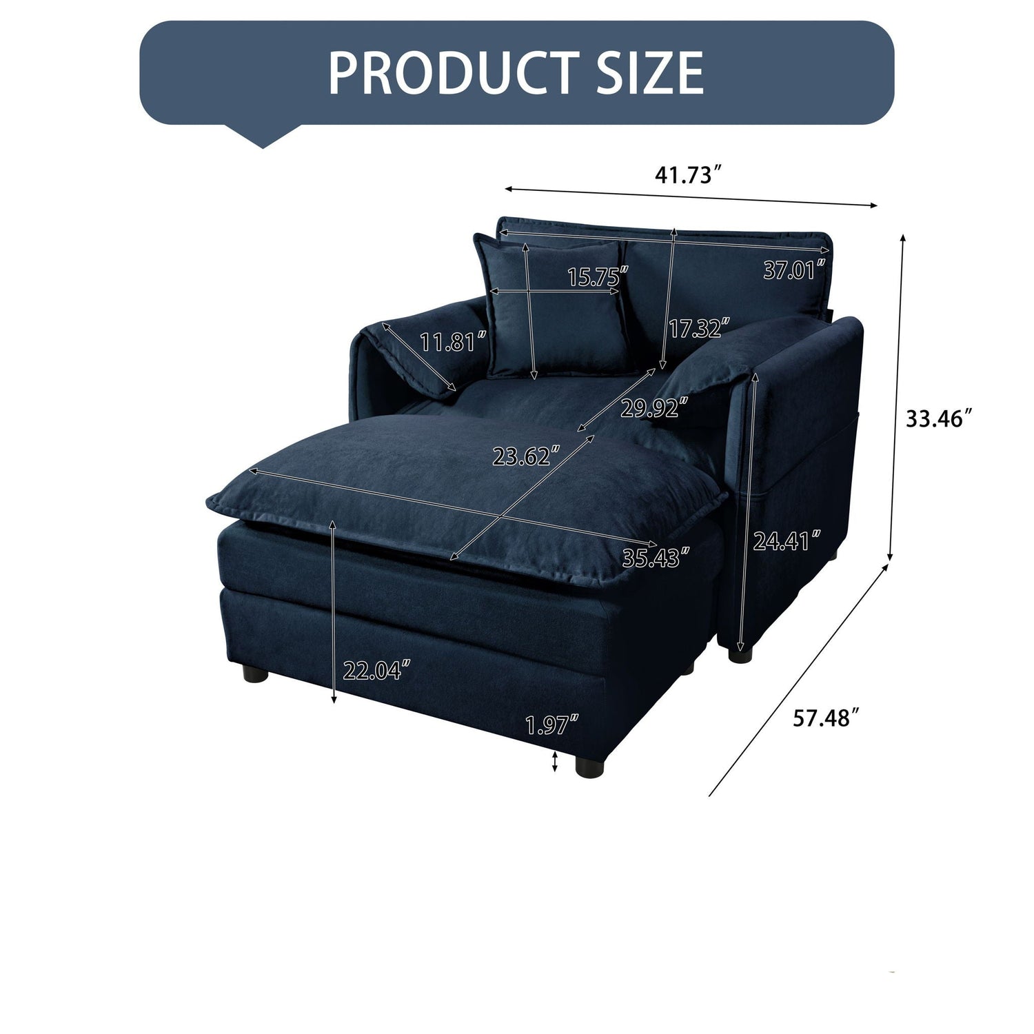 Oversized Recliner Chair With Movable Ottoman, Soft Chenille Upholstered Indoor Lounge Chair, Diy Combination - Blue