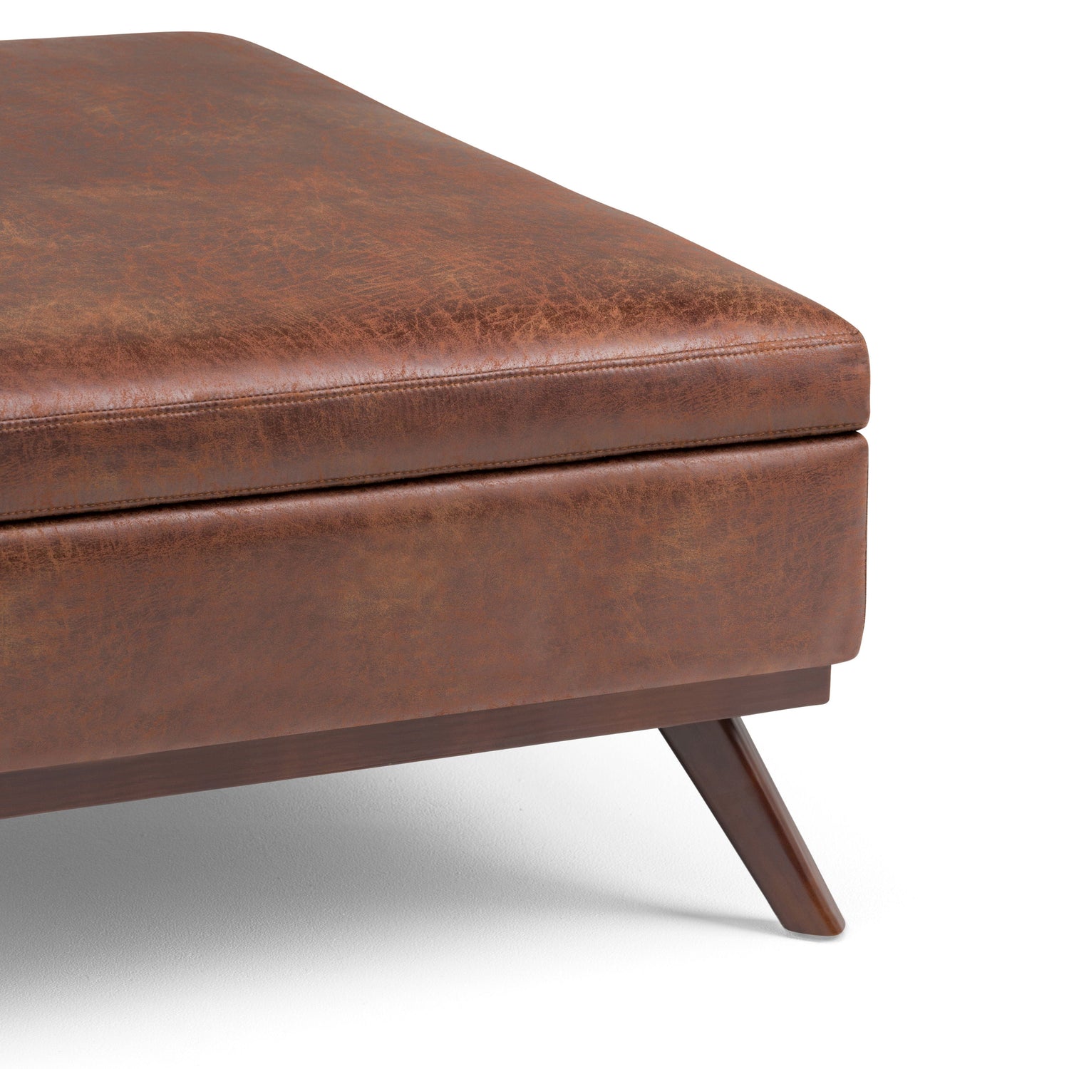 Owen - Extra Large Square Coffee Table Storage Ottoman - Distressed Saddle Brown