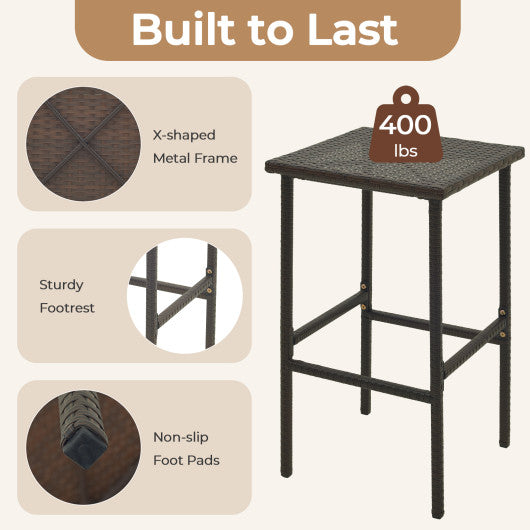 ● Selected Wicker Material: The frame is covered in hand-woven mix brown PE rattan which is both sun-protective and aesthetically pleasing. Besides the wicker barstools are fade-resistant making it ideal for year-round use.