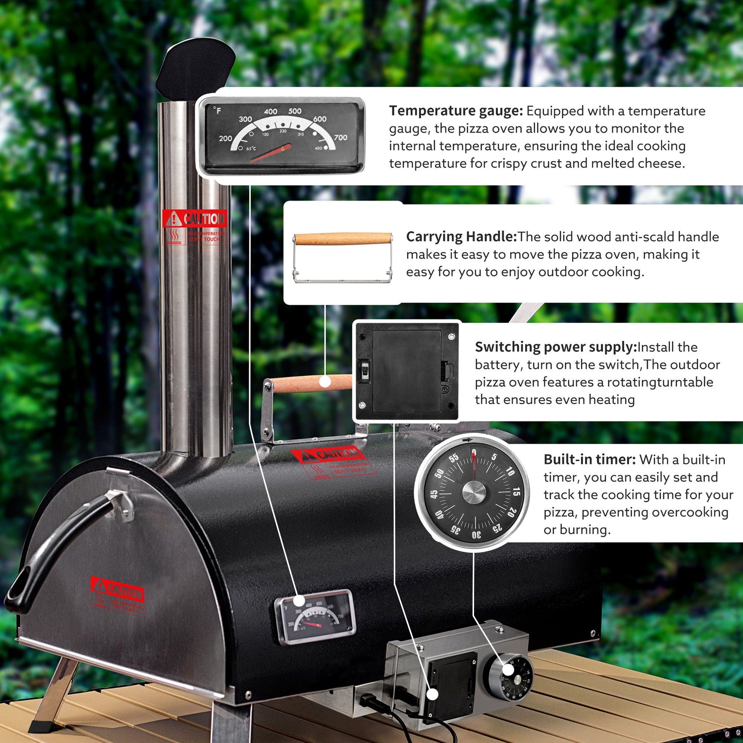 - Even Heating with Automatic Rotating Turntable: The outdoor pizza oven ensures even heating for a perfectly cooked pizza.
