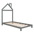 Twin Size Platform Bed With House Shaped Headboard - Gray