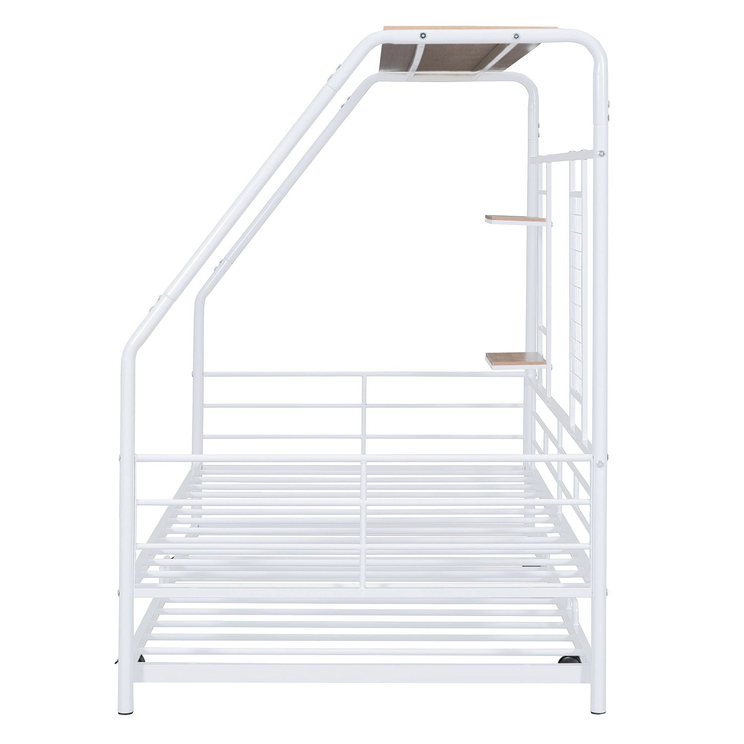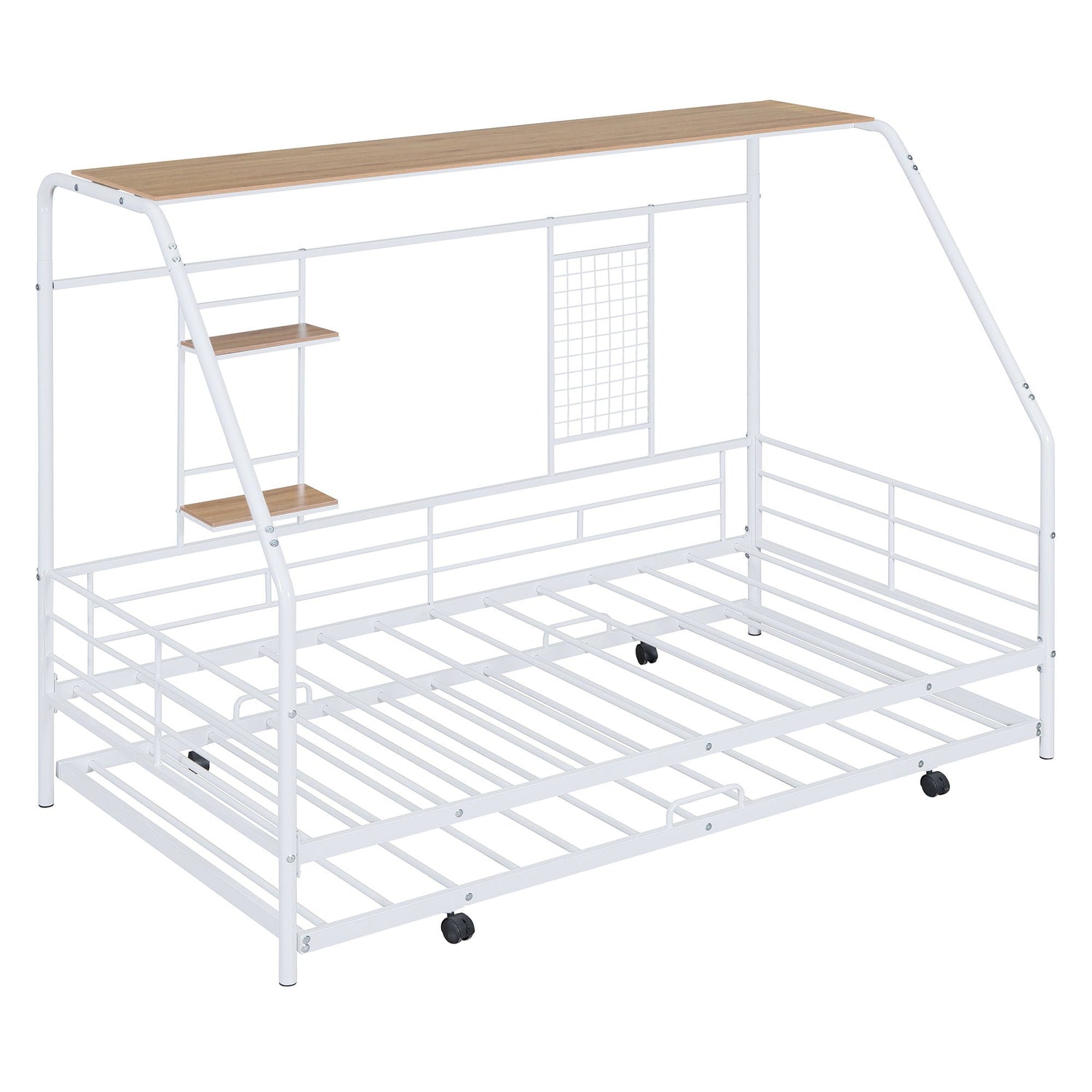 Built-in Shelf and Grid: The metal bed maximizes space utilization with three shelves and a metal grid for hanging decorations, photos, and more, adding functional storage and personalization options.