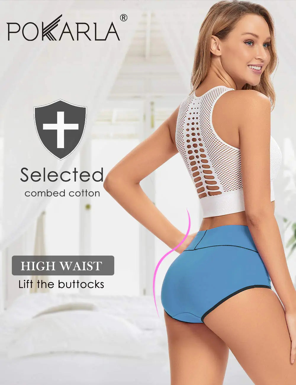 POKARLA Womens Cotton Underwear High Waist Full Coverage Briefs Soft Breathable Postpartum Panties Stretch Underpants