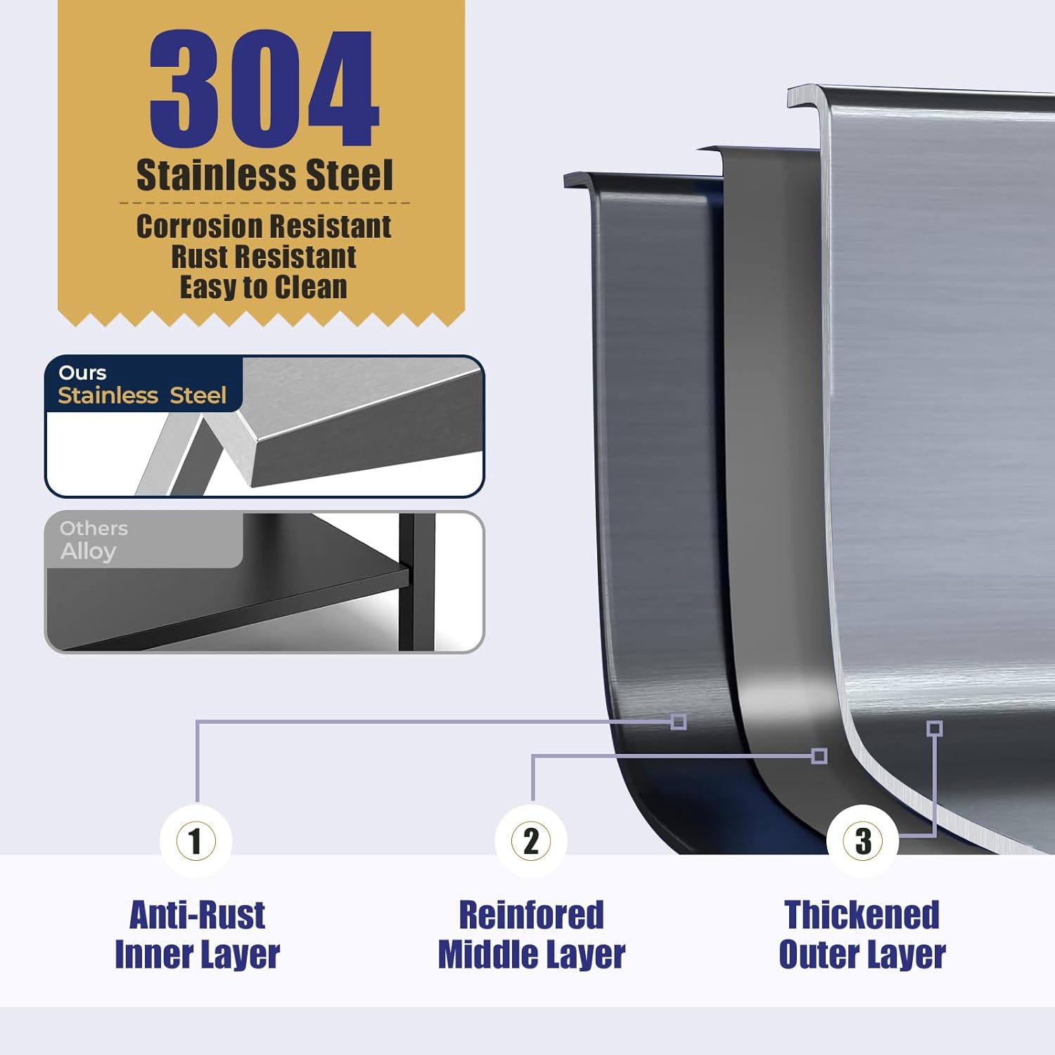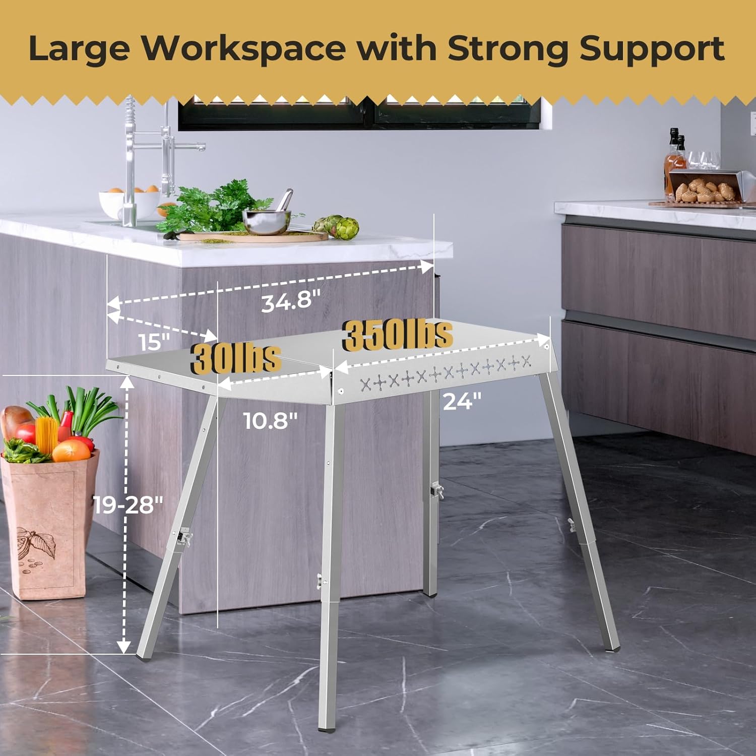 Portable Grill Prep Table with Adjustable and Folding Legs, 304 Stainless Steel BBQ Grill Stand for Tabletop Griddle and Pizza Oven T0124SA