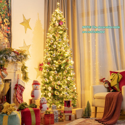 Pre-lit Artificial Pencil Christmas Tree with Pine Cones and Red Berries-7 ft
