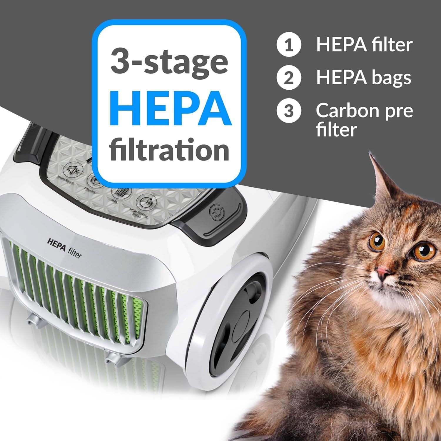 • FILTRATION - 3 Stages of filtration including sealed HEPA filtration will keep dust from entering your air.