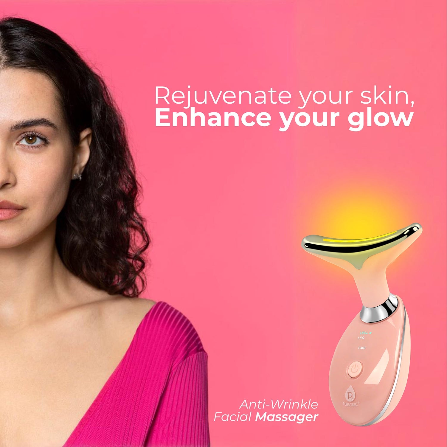 Pursonic 7-in-1 LED Light Therapy Beauty Device - Red Light Therapy Face & Neck Sculpting Wand by Pursonic