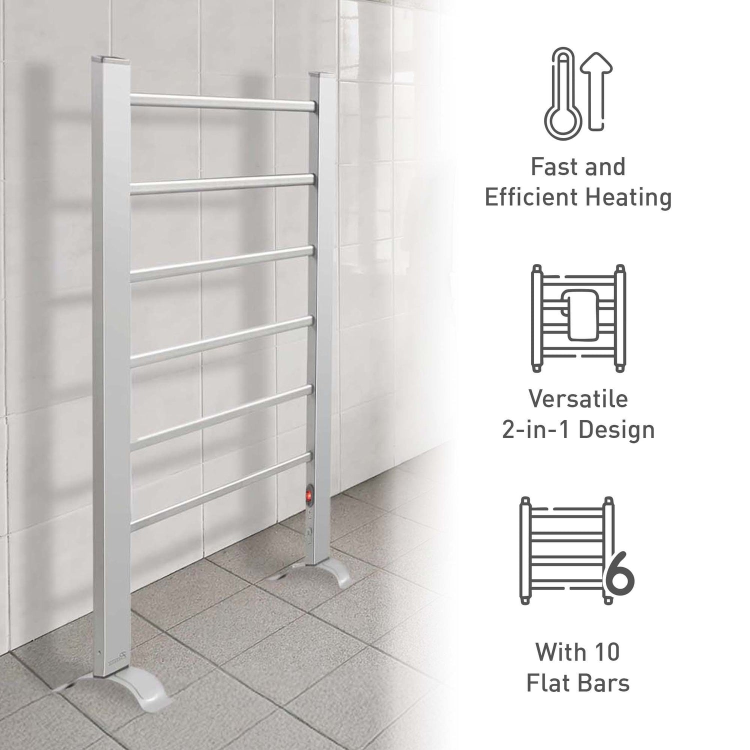 Experience the ultimate comfort with warm, dry towels straight out of the shower!