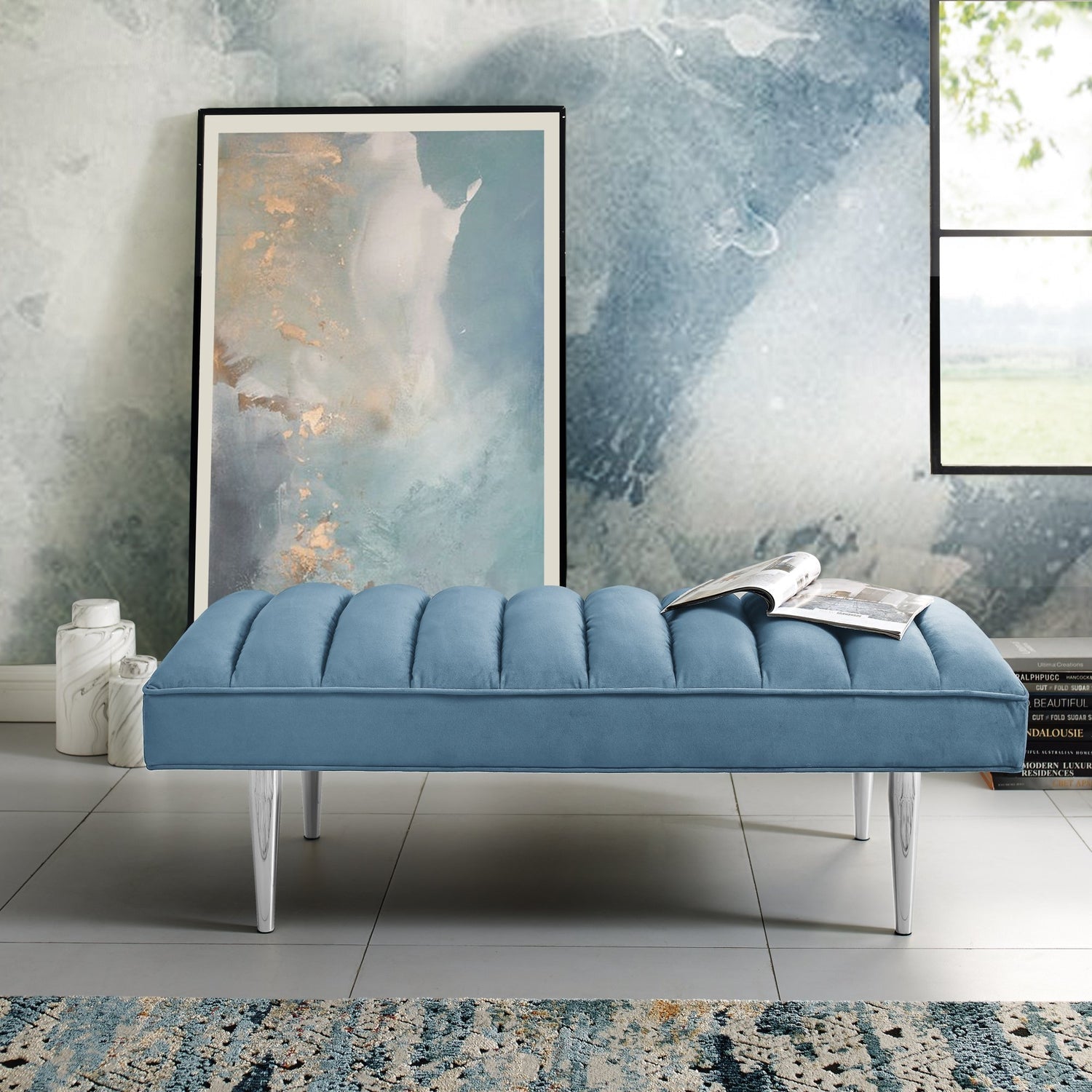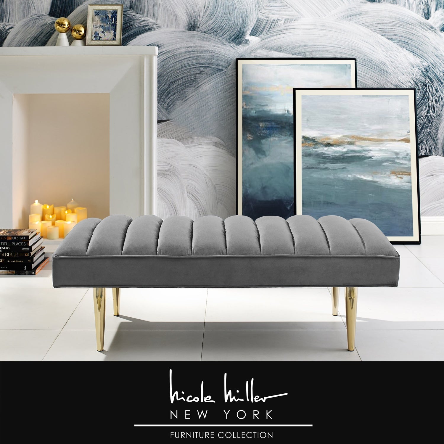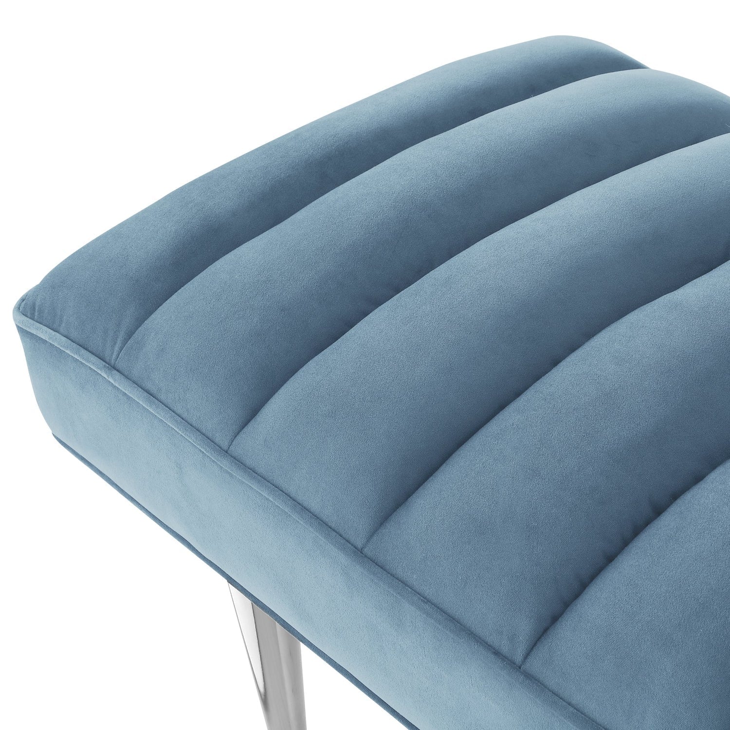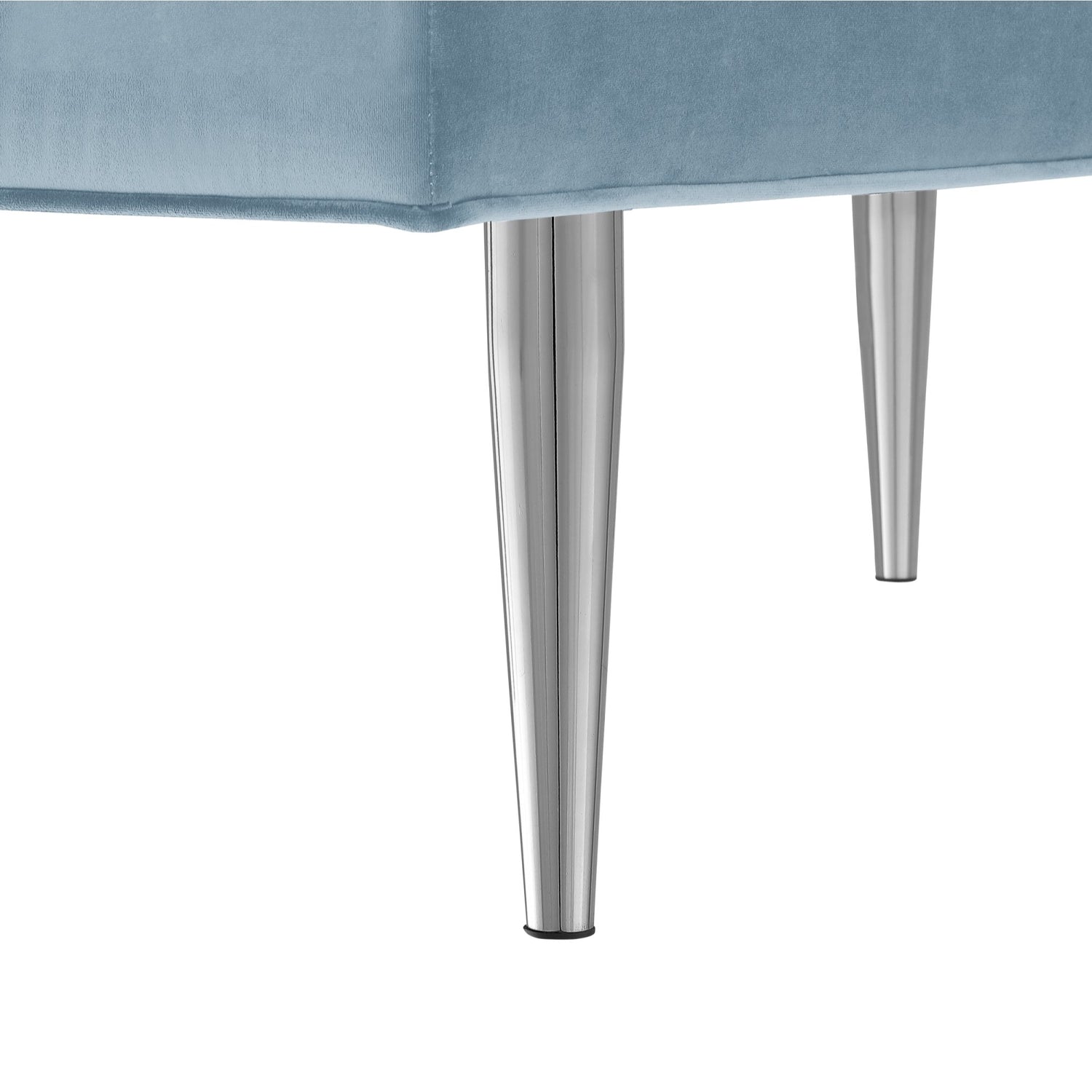 - ELEGANT DESIGN - This bench with padded seat and metal tapered leg design is a trending combination of sleek and contemporary style. Featuring rich velvet upholstery and lacquer finish mirrored legs, this glamorous style bench w/ modern appeal really makes a statement and brings luxurious and sophisticated look.