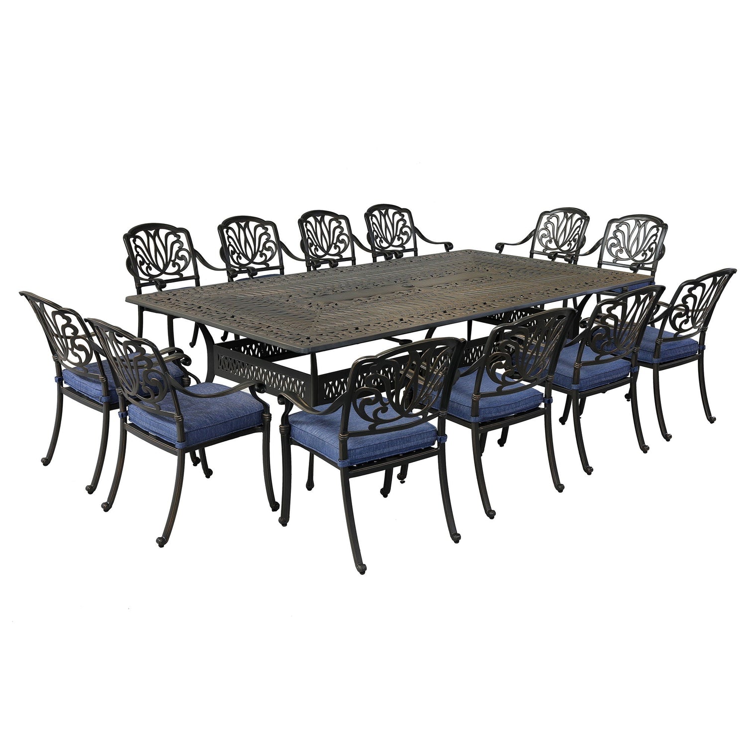 Rectangular Metal Dining Set With Cushions by Couch.com - Blue / 13 Pc. Table, 12 Chairs is backordered and will ship as soon as it is back in stock.