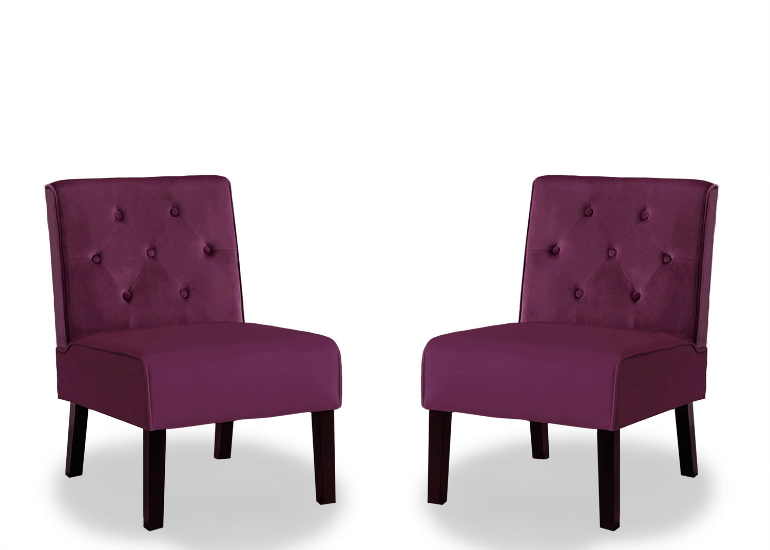 Reese - Living Room Armless Button Tufted Pattern Accent Chair (Set of 2) - Purple