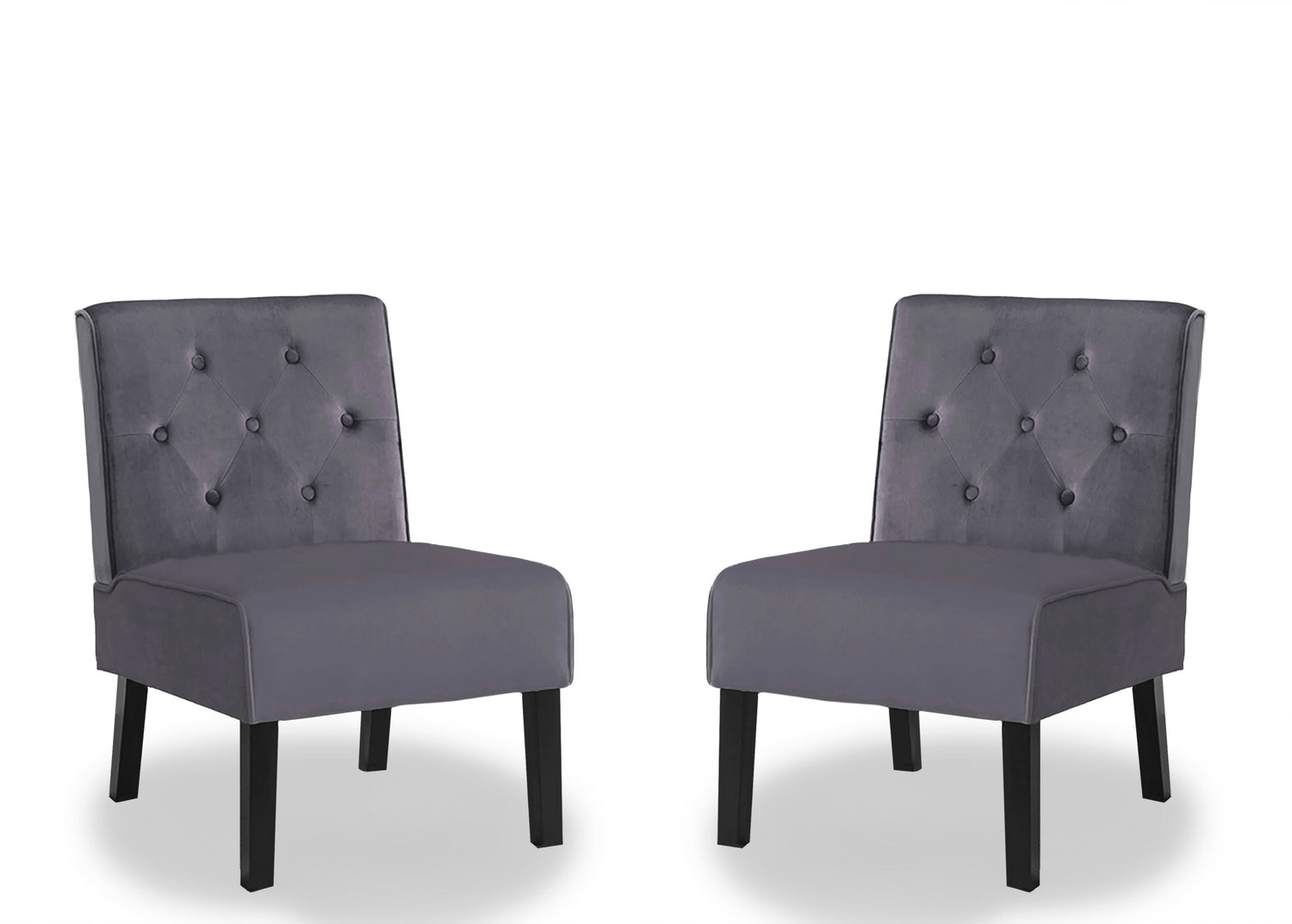 Reese - Living Room Armless Button Tufted Pattern Accent Chair (Set of 2) - Gray