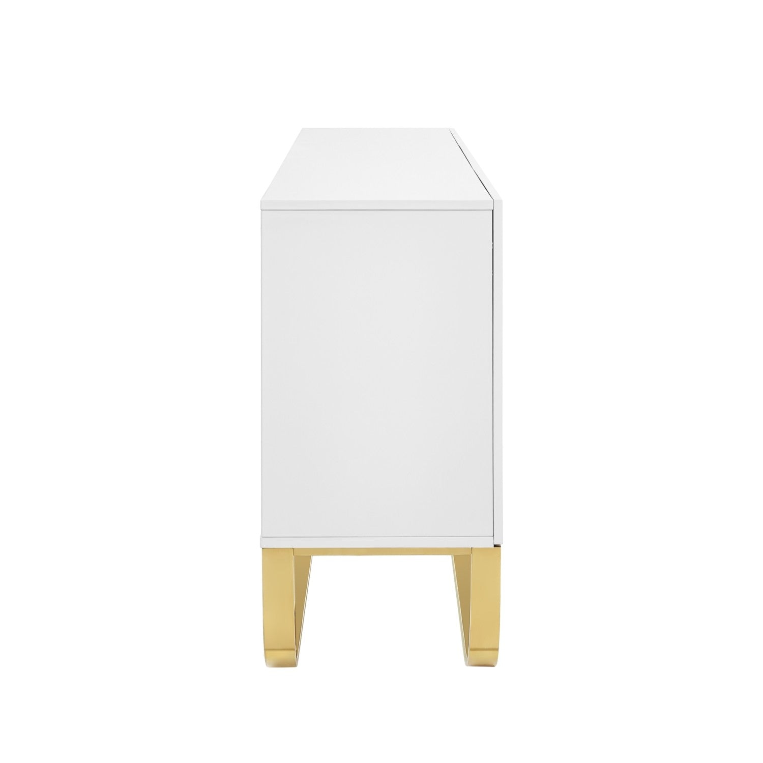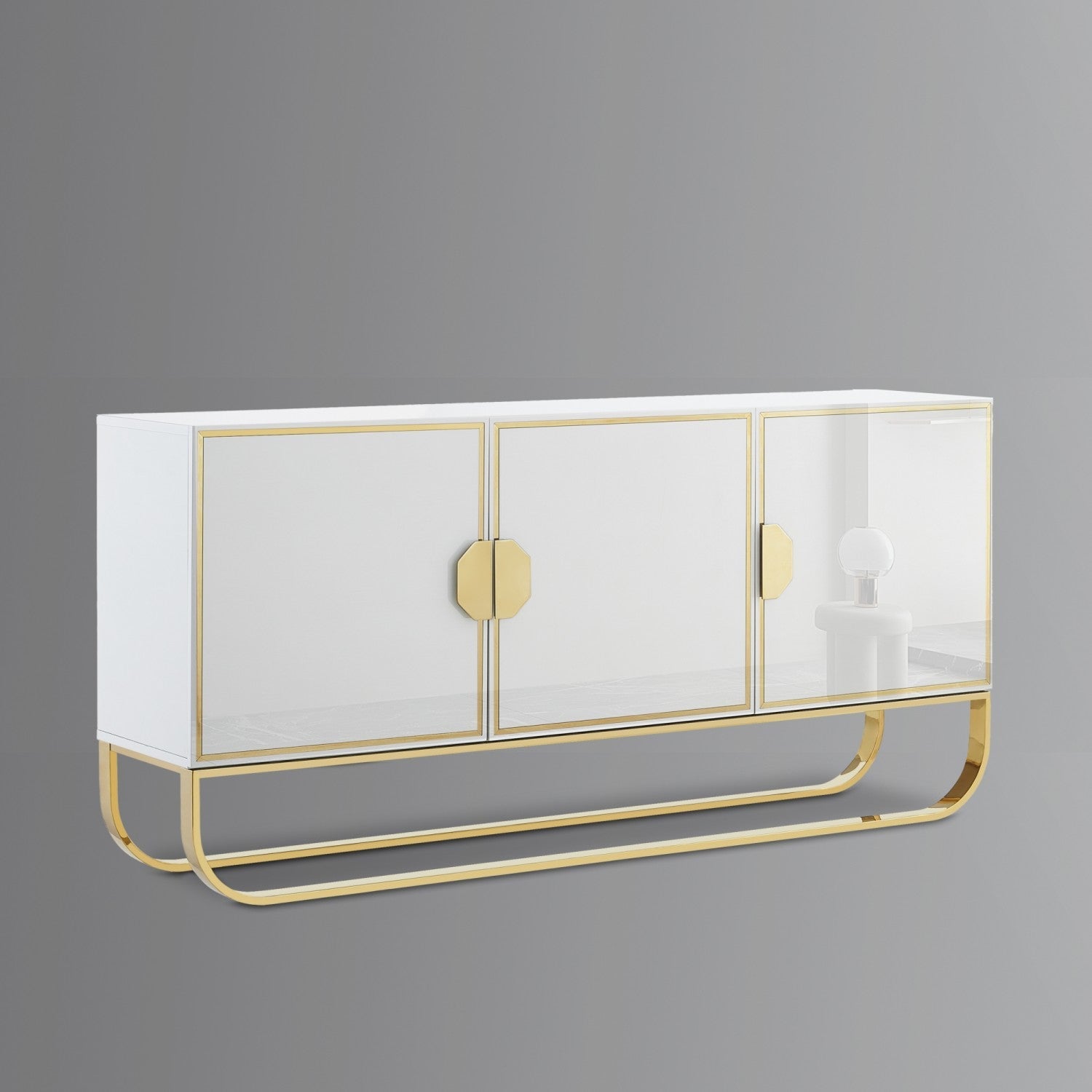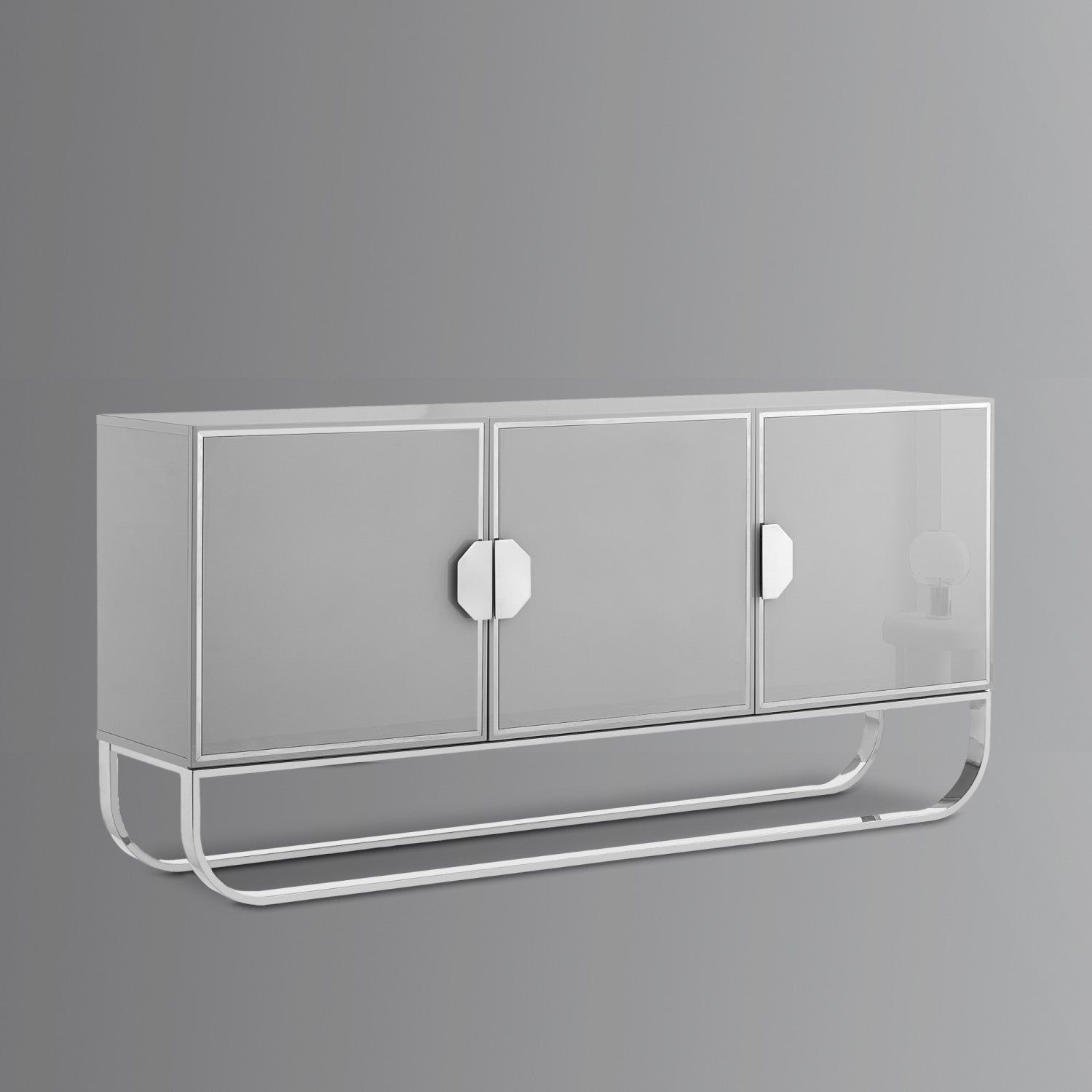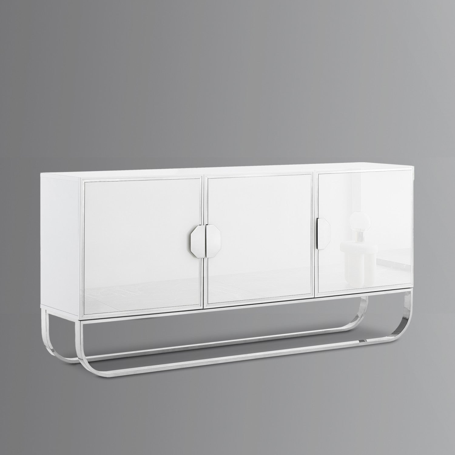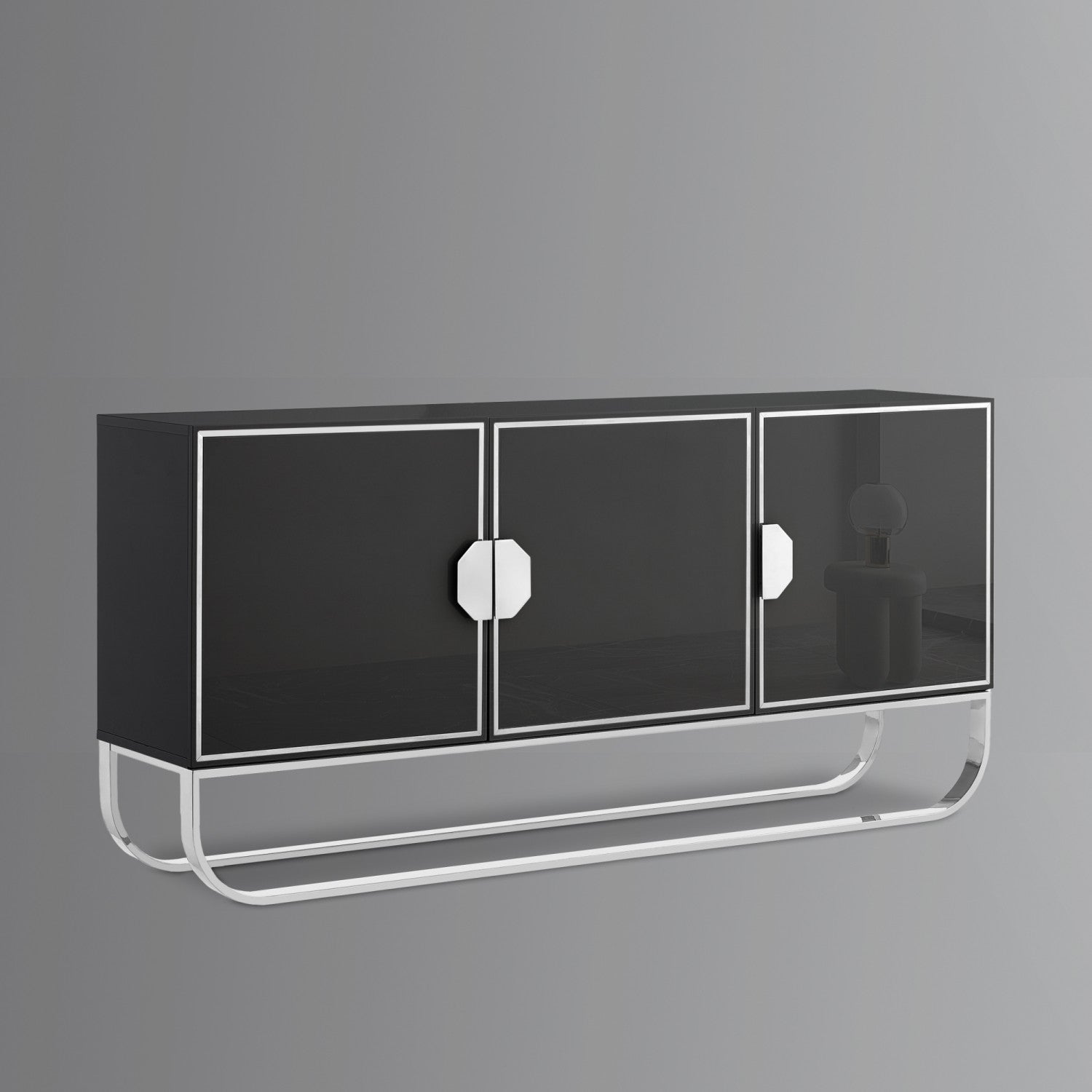 - ELEGANT DESIGN – This modern gorgeous sideboard in high gloss finish with stainless steel handles and a rounded frame will add a touch of freshness to any place, making it a versatile addition to your contemporary environment.