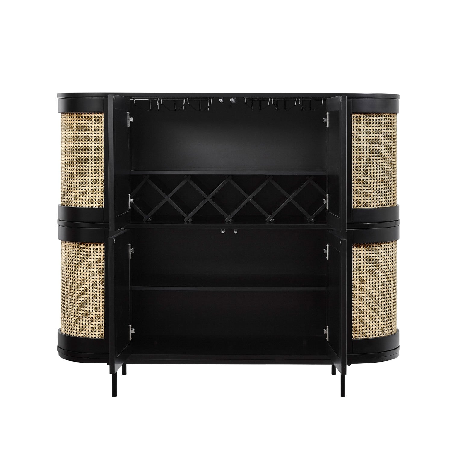 - ATTRIBUTES: 4-Door, Stemware Rack, 5 Bottles Wine Rack, Storage, Rattan Imitation