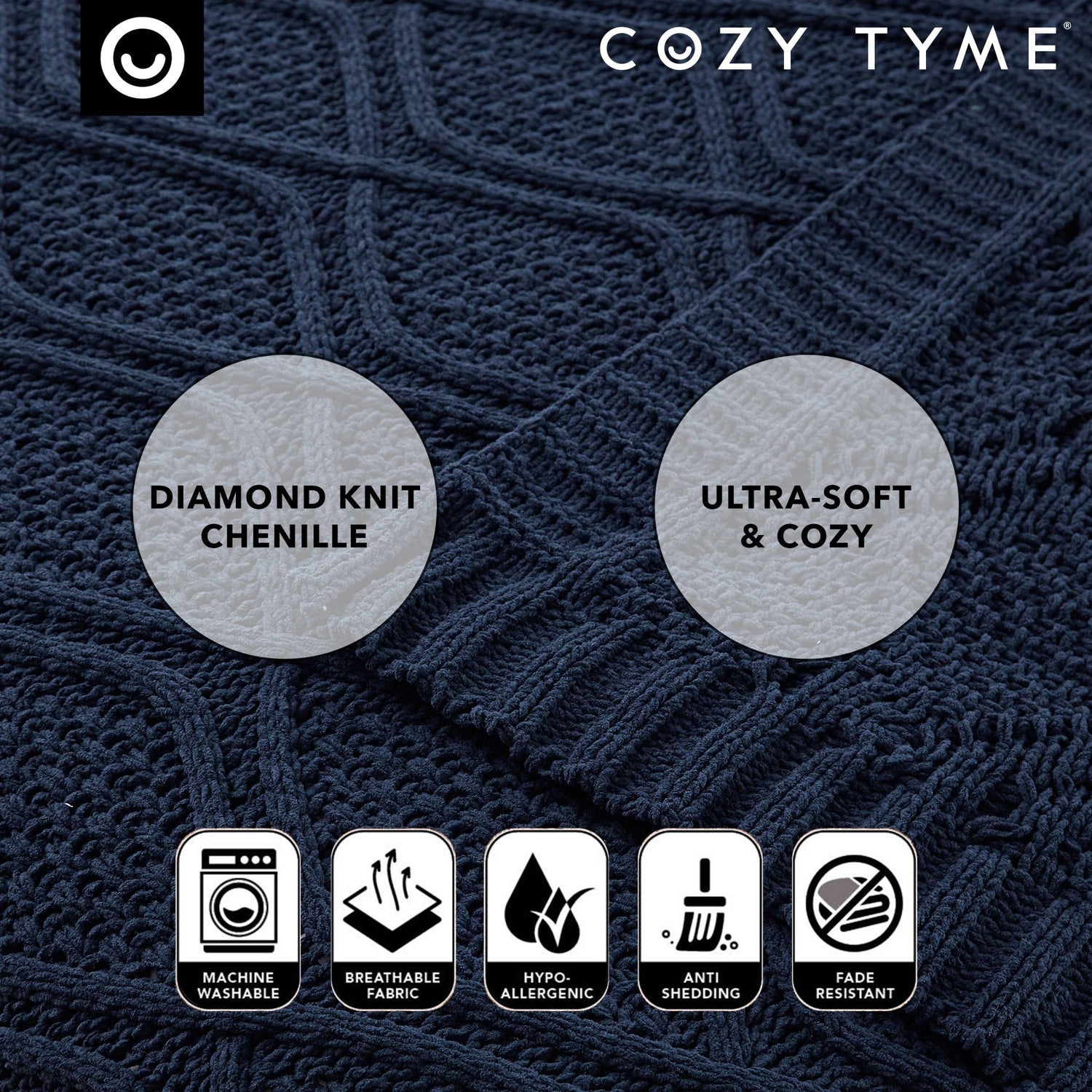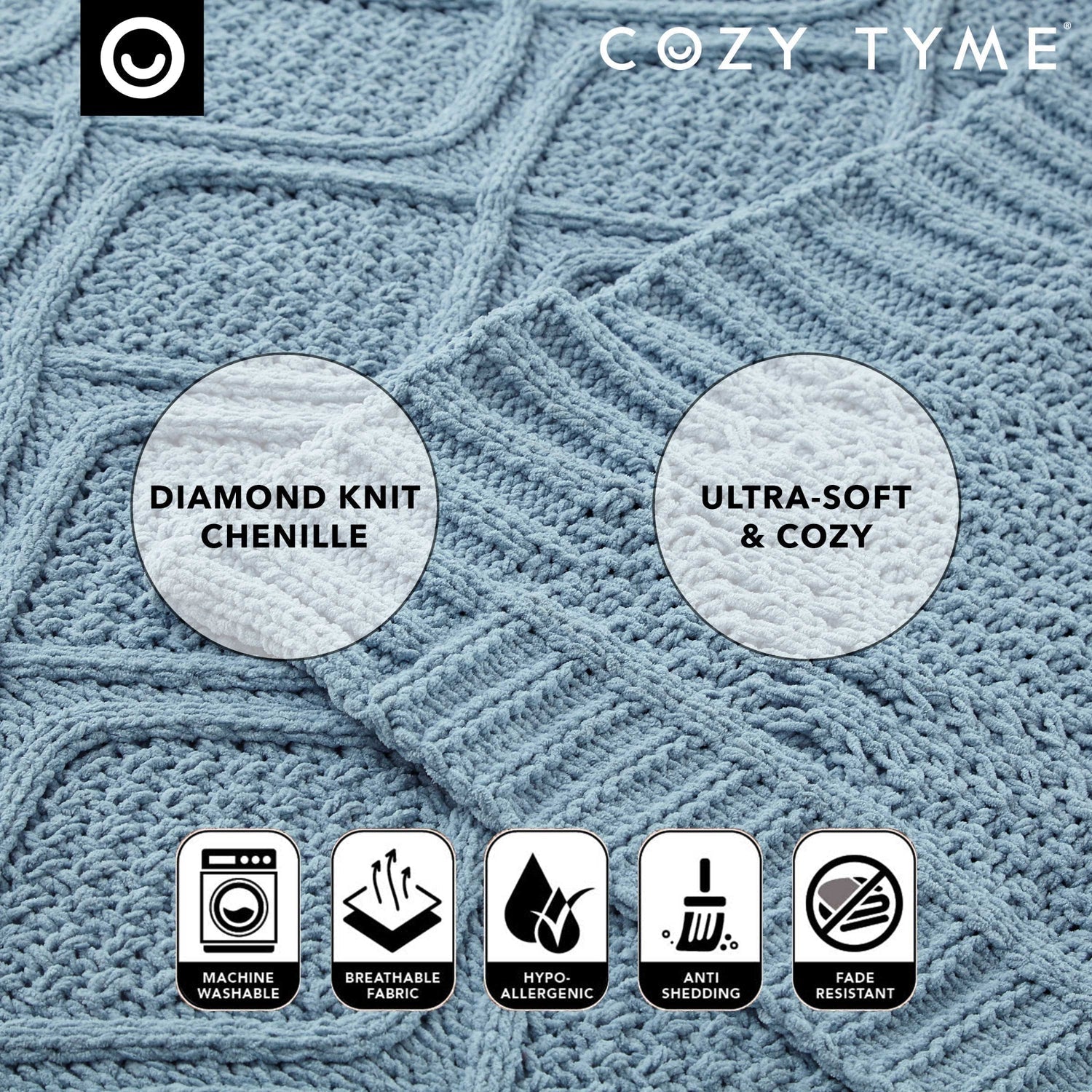 Rosa Chenille Diamond Cable Throw - Blue is backordered and will ship as soon as it is back in stock.